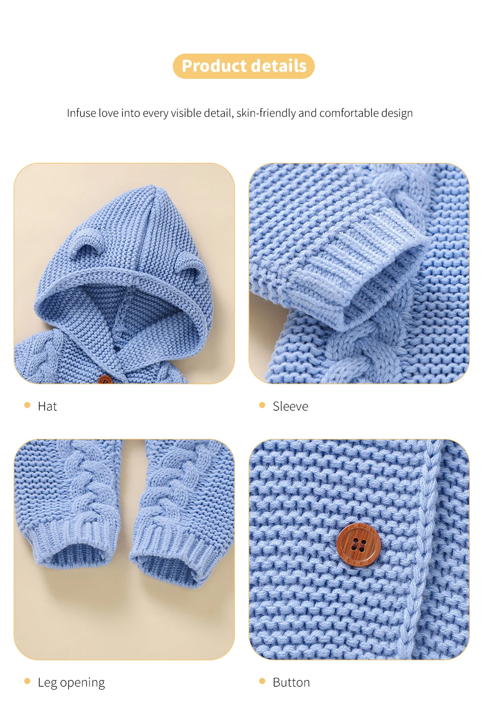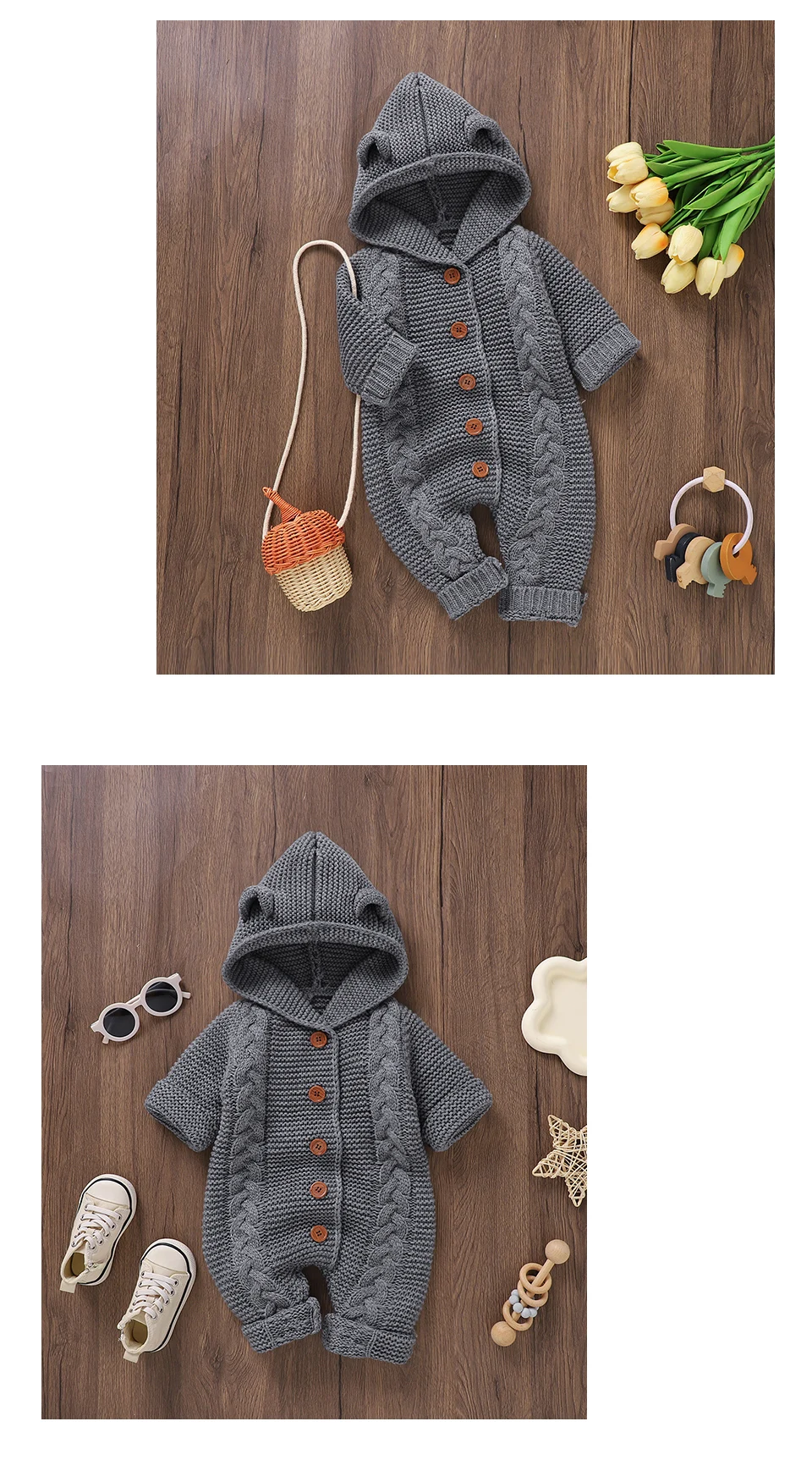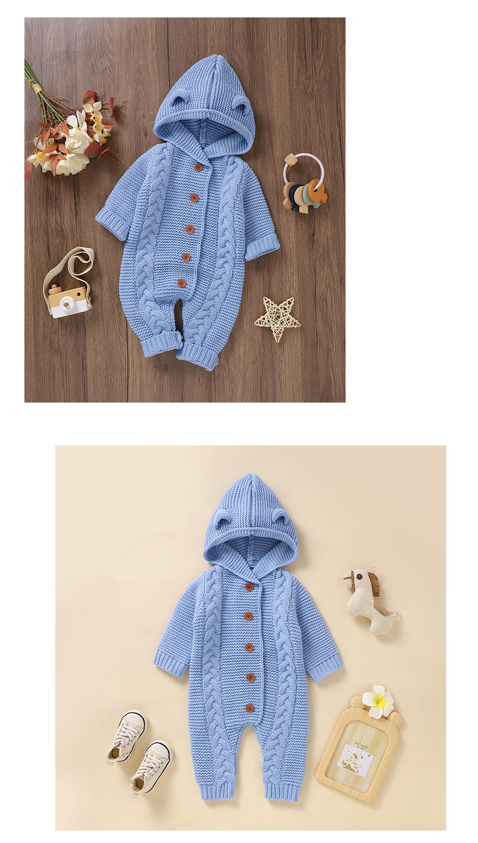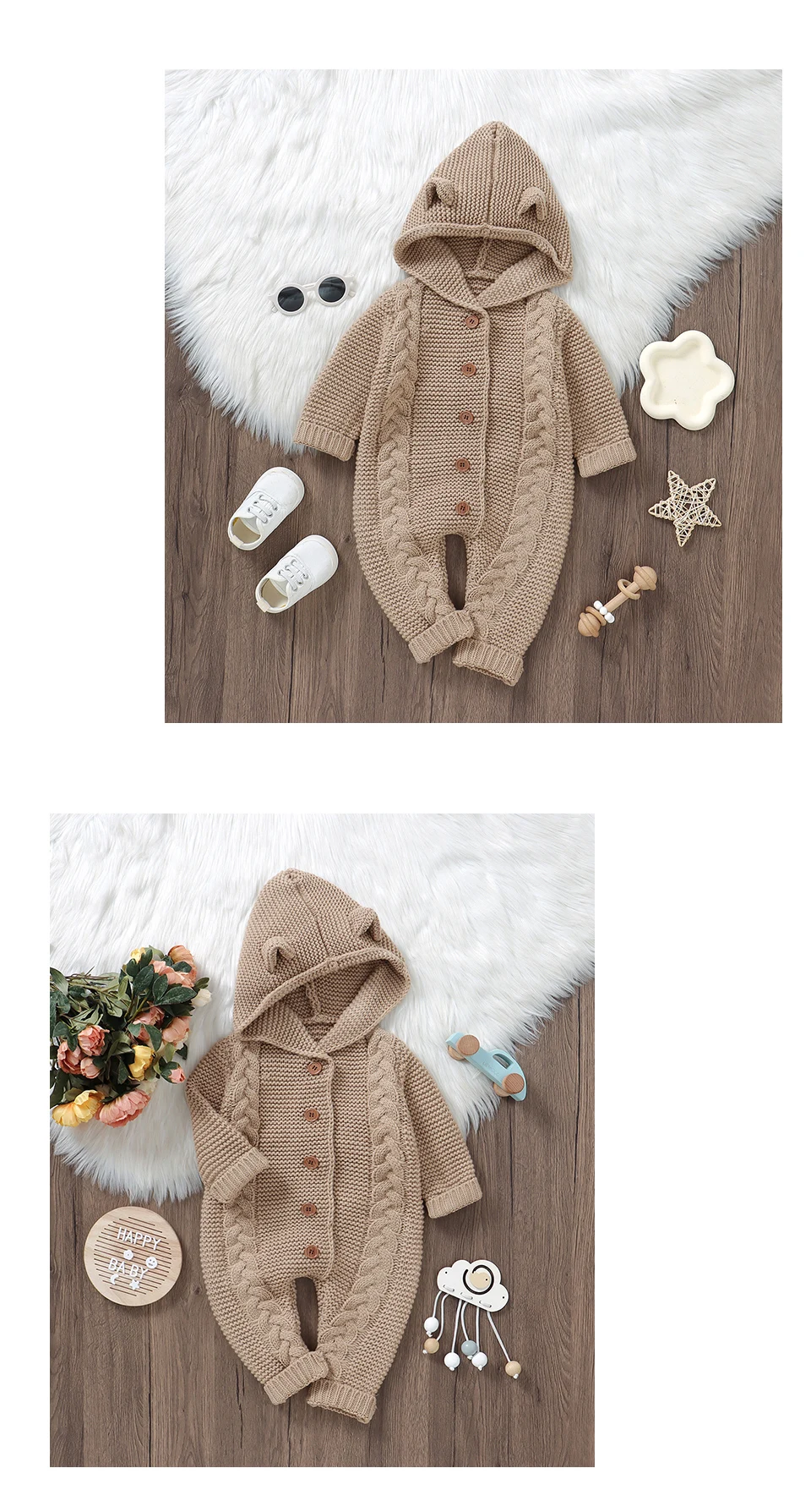 Peleles tejidos para bebé, ropa de invierno con capucha de manga larga para recién nacidos, monos para niños y niñas, trajes de 0 a 18m, monos infantiles de una pieza