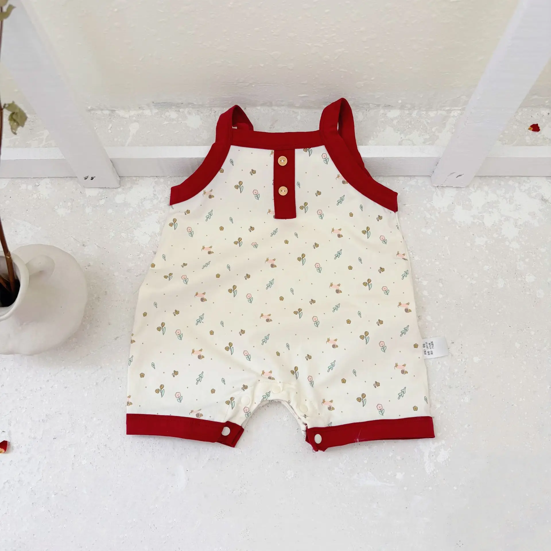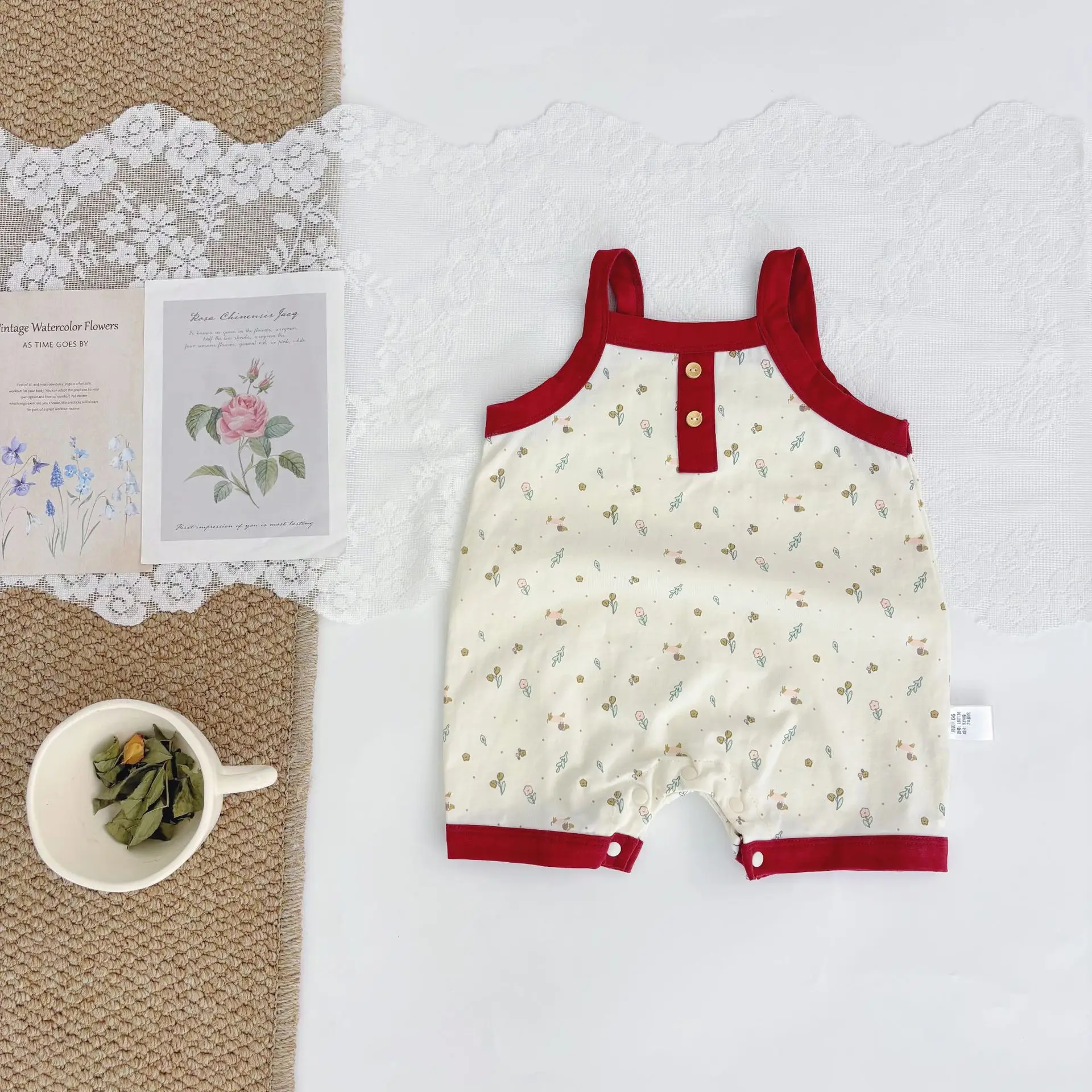 Con un encantador patrón floral con detalles en bloques de color, este mameluco sin mangas es elegante y adorable.El diseño está a la moda, lo que hace que su bebé destaque con un look moderno.