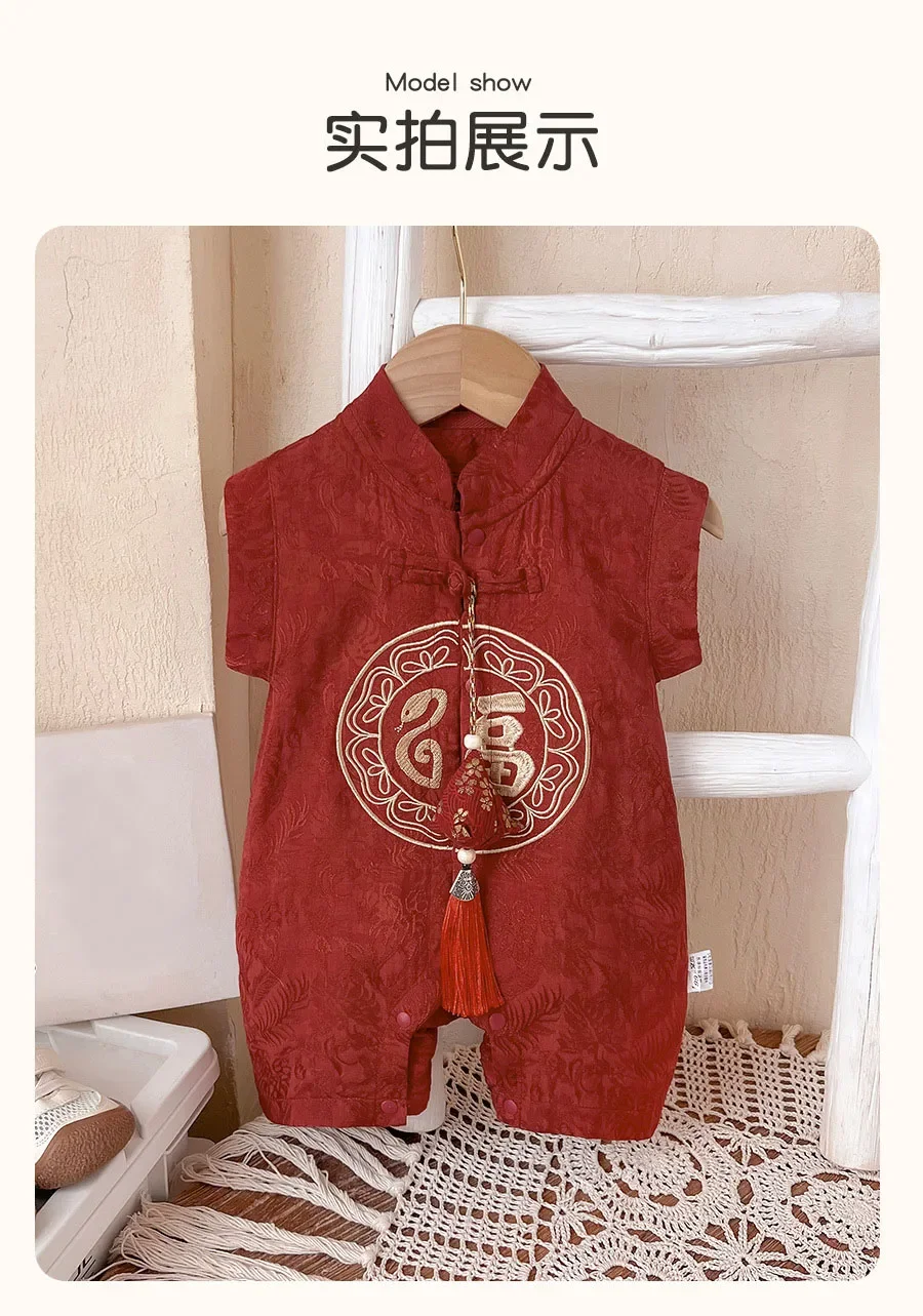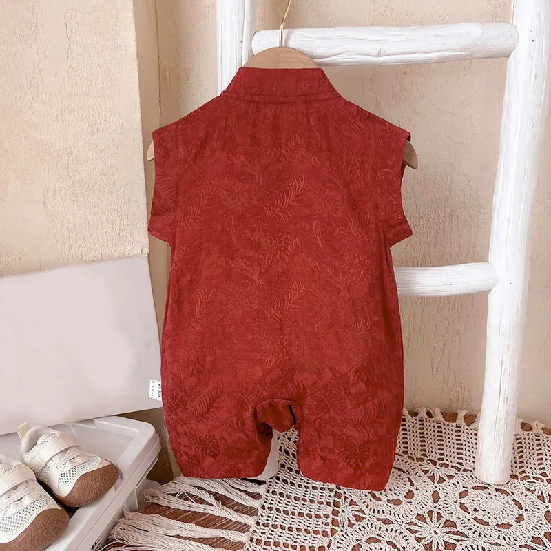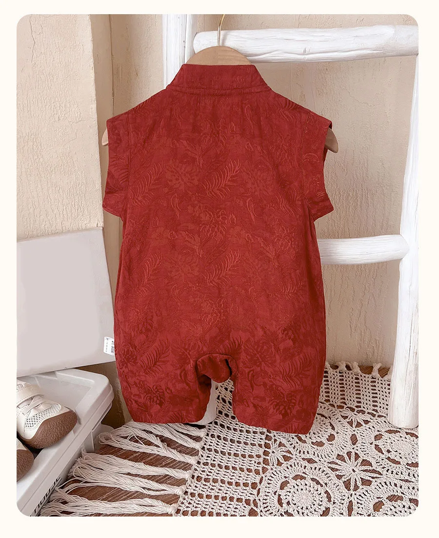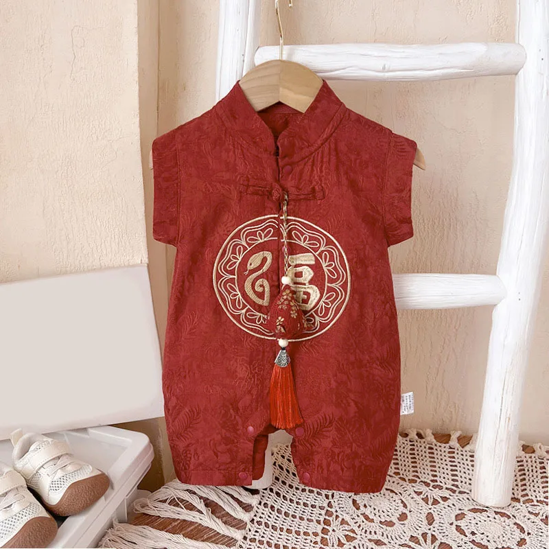 Peleles de verano, ropa para niño de 0 a 3 meses, monos de manga corta con estampado bonito bordado de estilo chino, artículos para recién nacidos B024