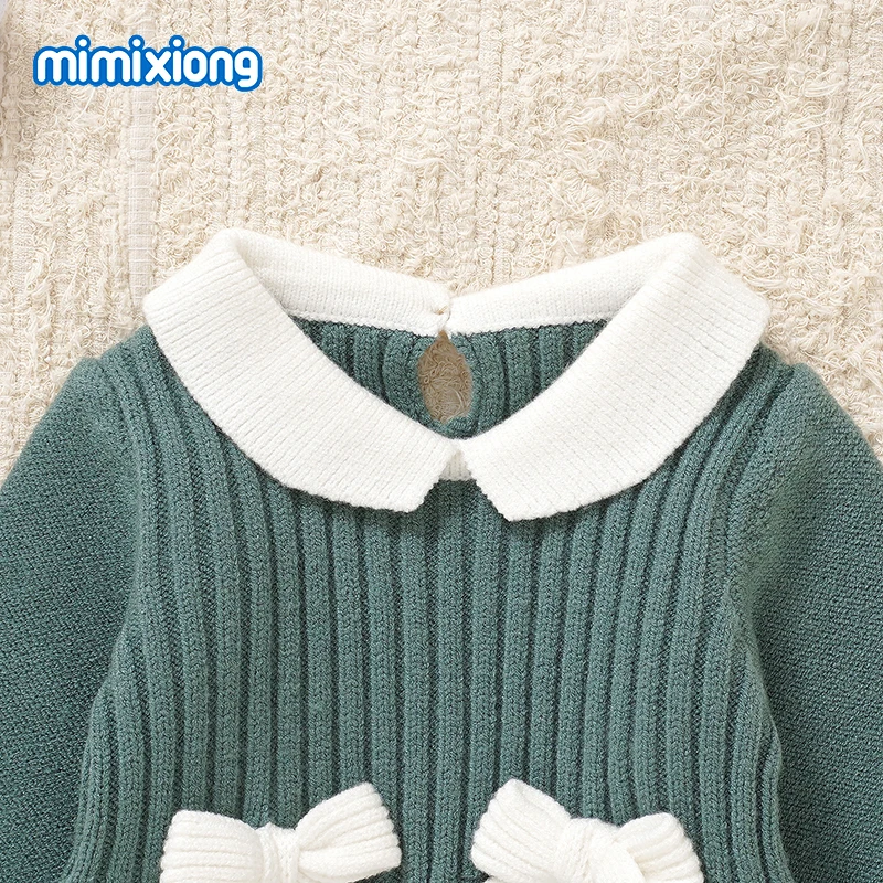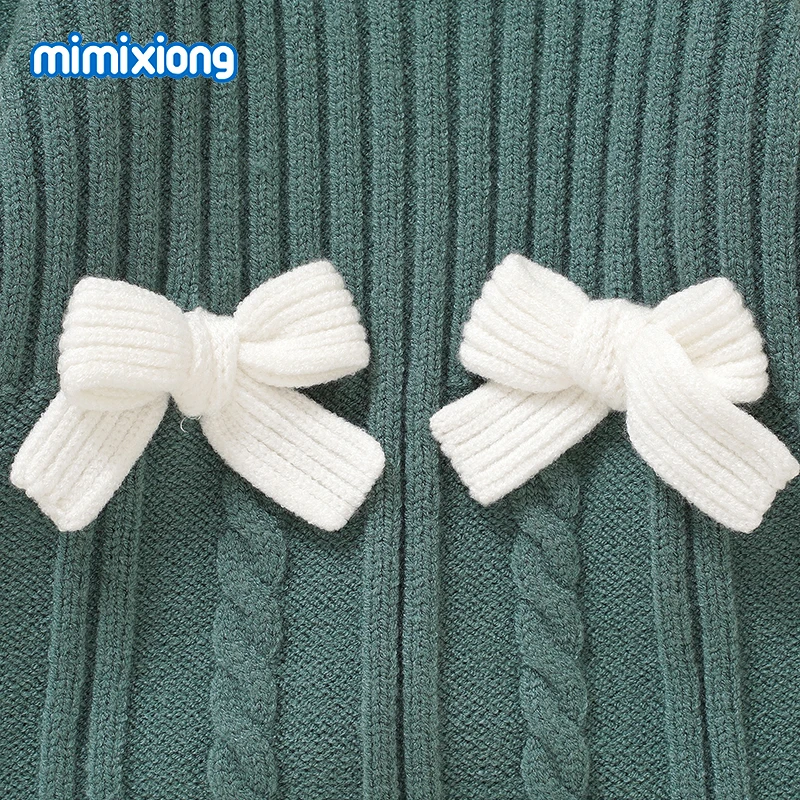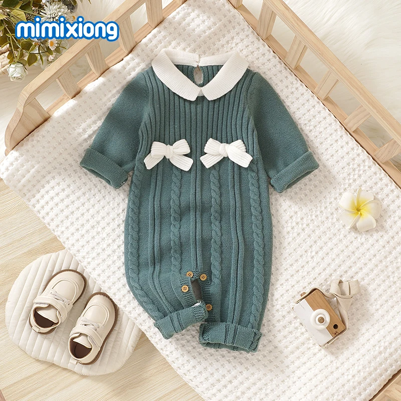 Peleles verdes para niñas, monos de una pieza de manga larga tejidos con lazo a la moda para recién nacidos, monos para niños pequeños para primavera, Otoño e Invierno