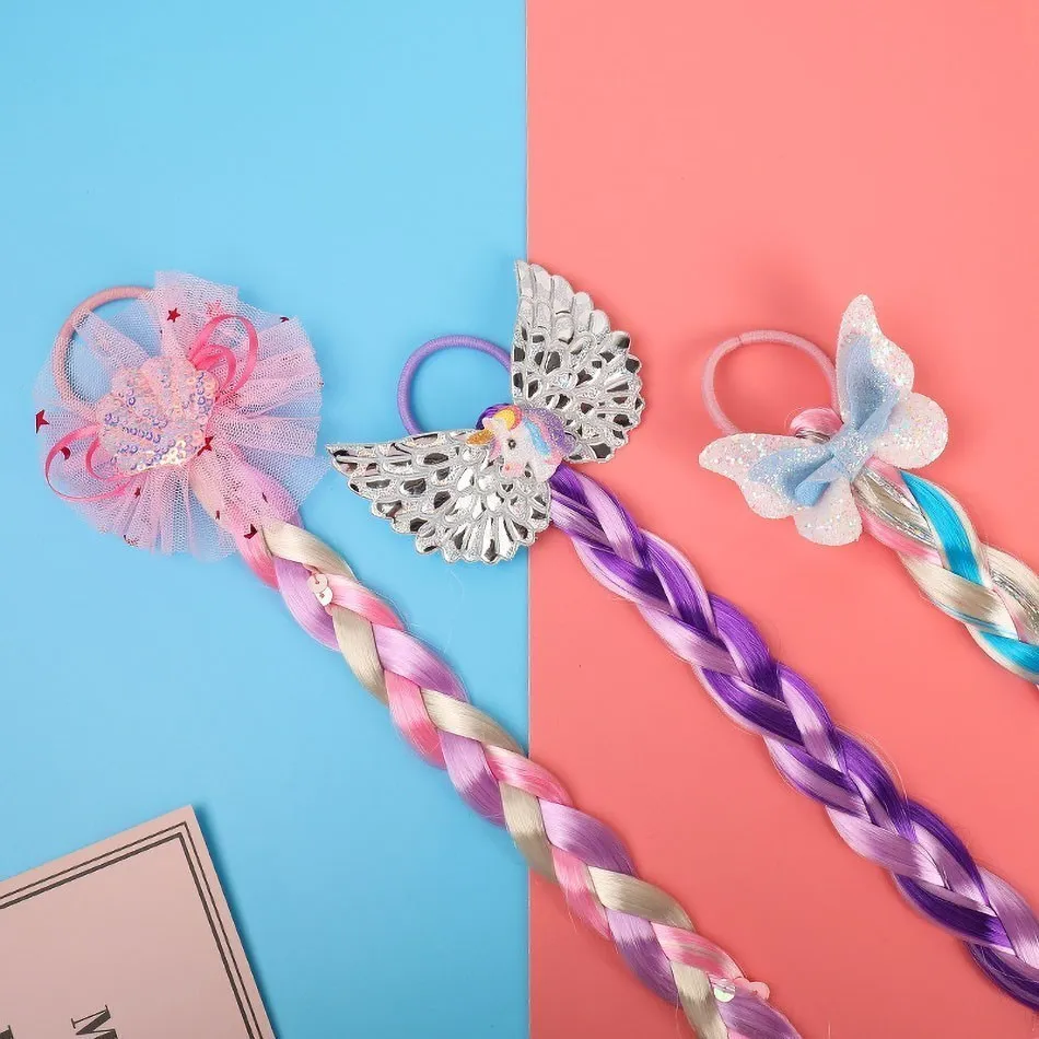 Comprar Pelo de unicornio para niñas Lazo para el pelo de arcoíris para niños, accesorios de princesa, elásticos de copo de nieve para niños pequeños, accesorios para bebés, trenza sin daños