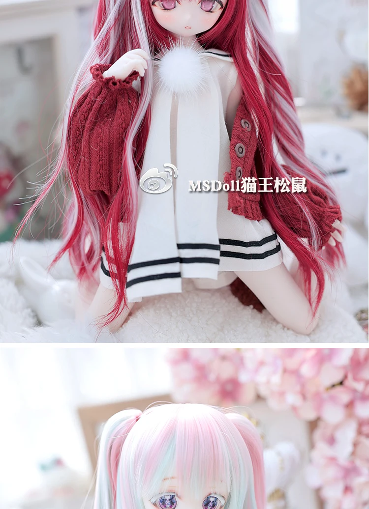 Peluca con doble cola de caballo para muñeca BJD 1/3, moda, hermosa peluca con estilo de dibujos animados de Anime Balayage para juguetes de muñecas BJD