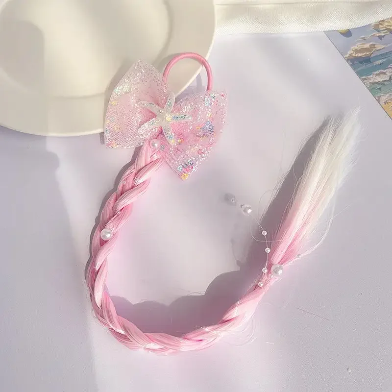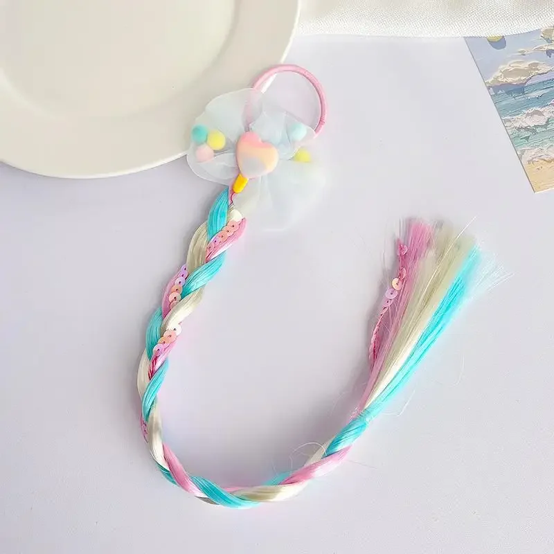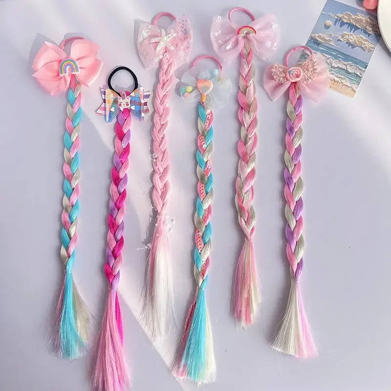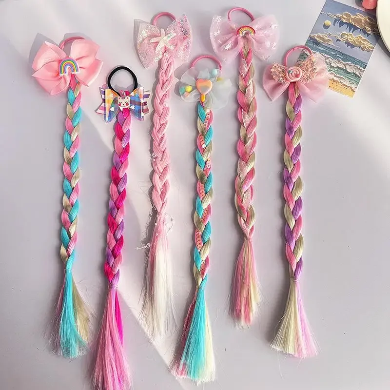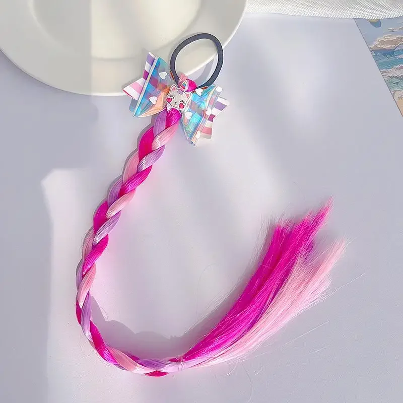 Pelucas bonitas de unicornio, cola de caballo para niños y niñas, Color caramelo, lazo de mariposa de dibujos animados, coleta, estilismo para el cabello, bandas de goma, tocados Brai