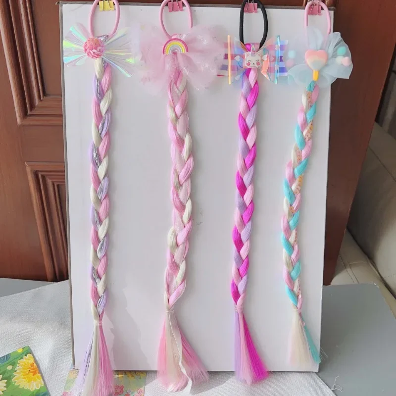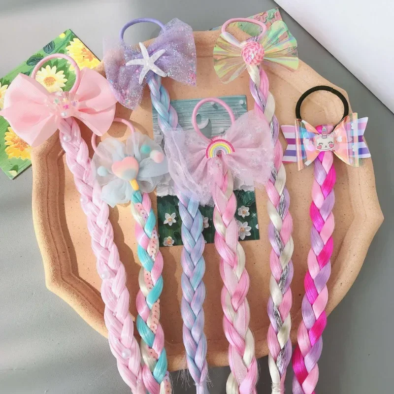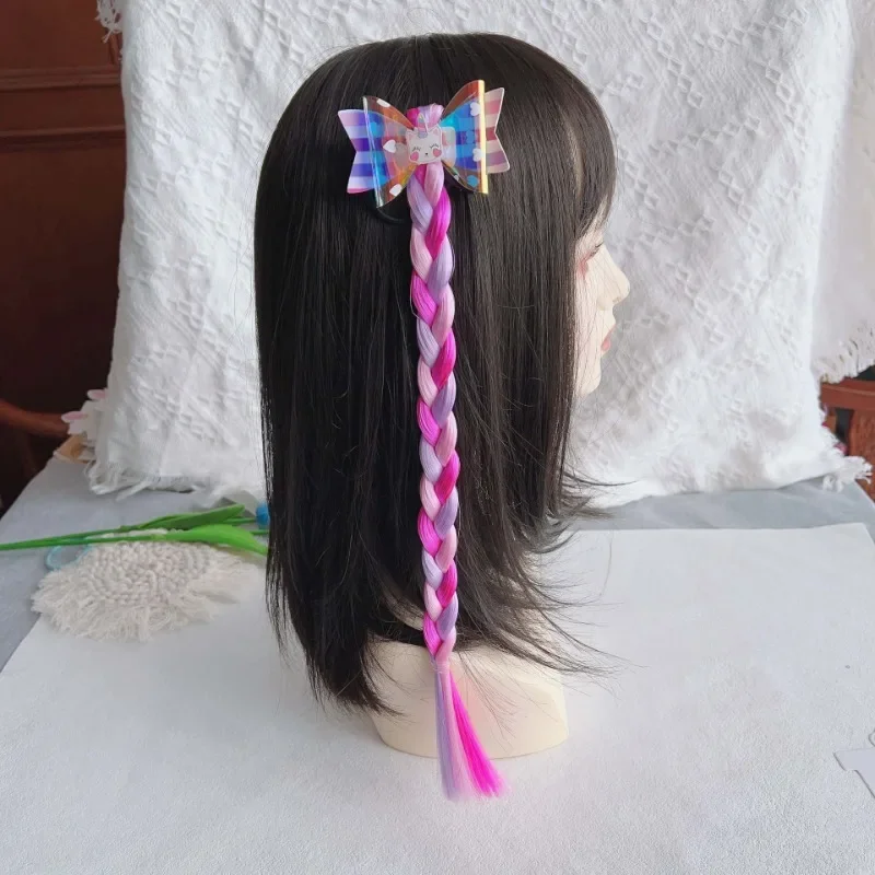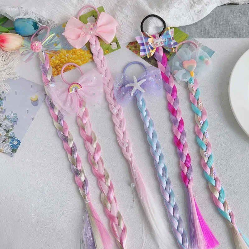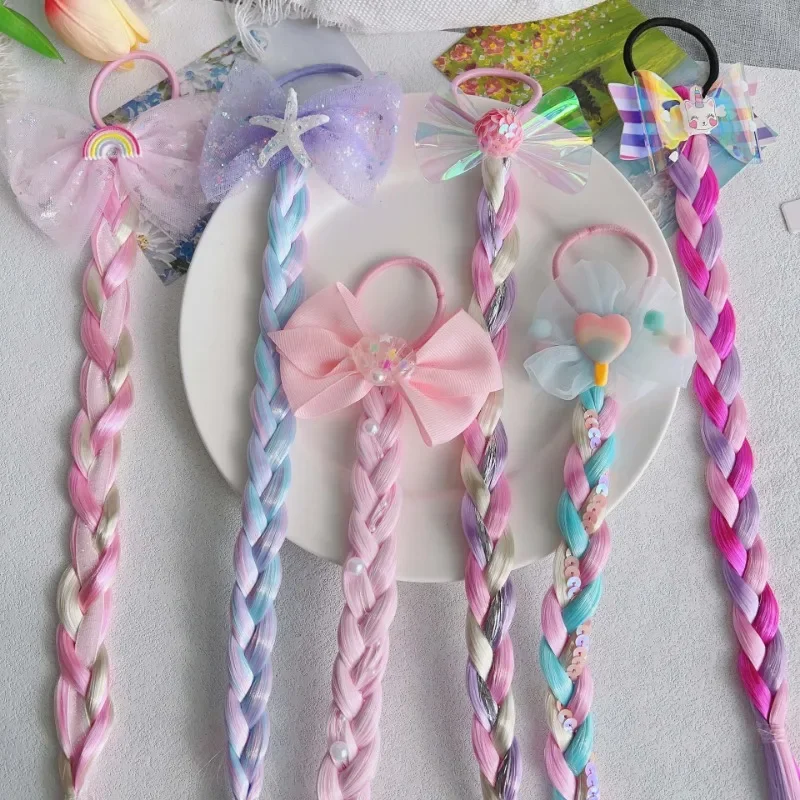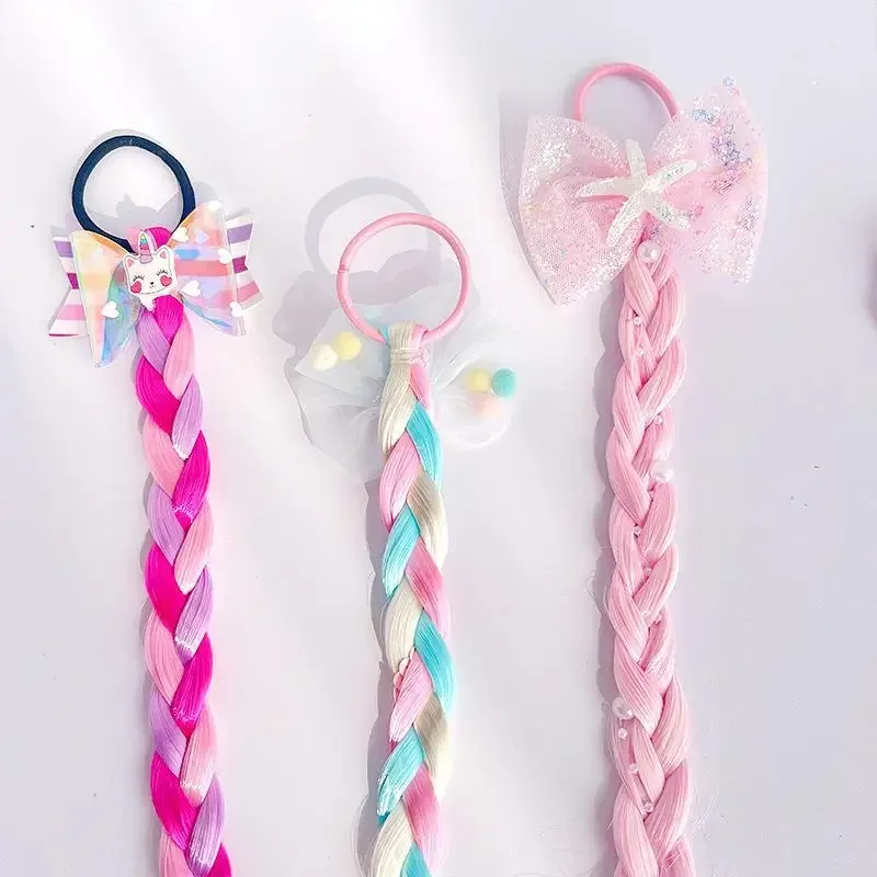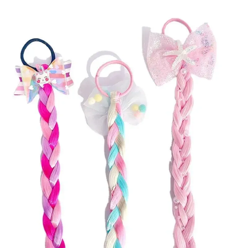 Pelucas bonitas de unicornio para niñas, cola de caballo de Color caramelo, lazo de mariposa de dibujos animados, coleta, estilismo para el cabello, bandas de goma, tocados trenzados