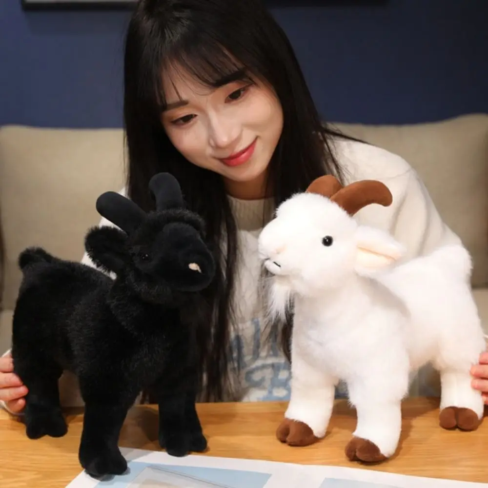 Goat Shape Plush Doll Plush Goat Toy Standing Goat Plush Toy Adorable Black White Stuffed Doll Pillow for Home Office for Kids.