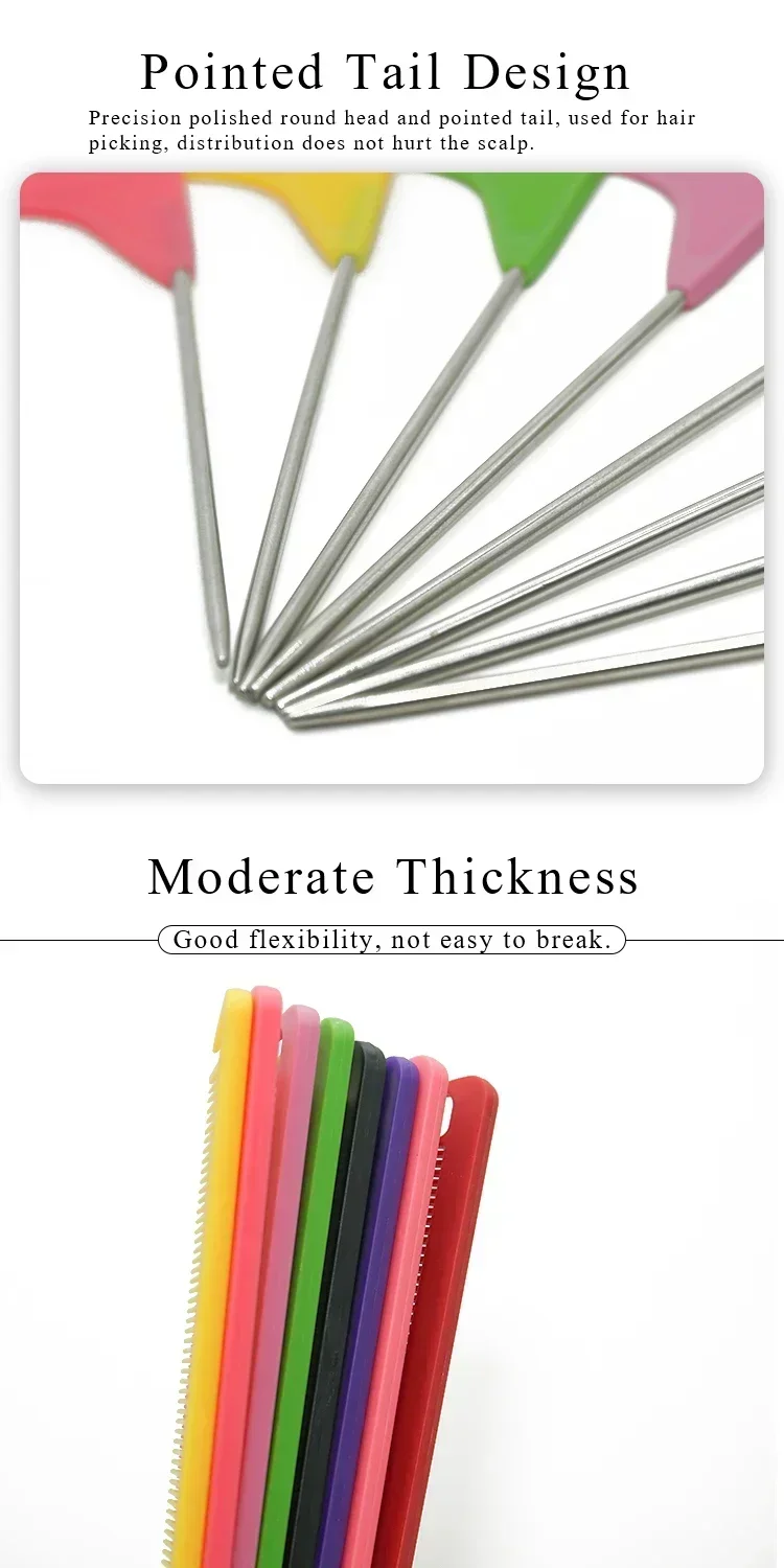 【Nombre del producto】Pro cola puntiaguda salón peluquería peinado peine antiestático cepillo de pelo aguja de acero Pin rato peines accesorios de peluquero