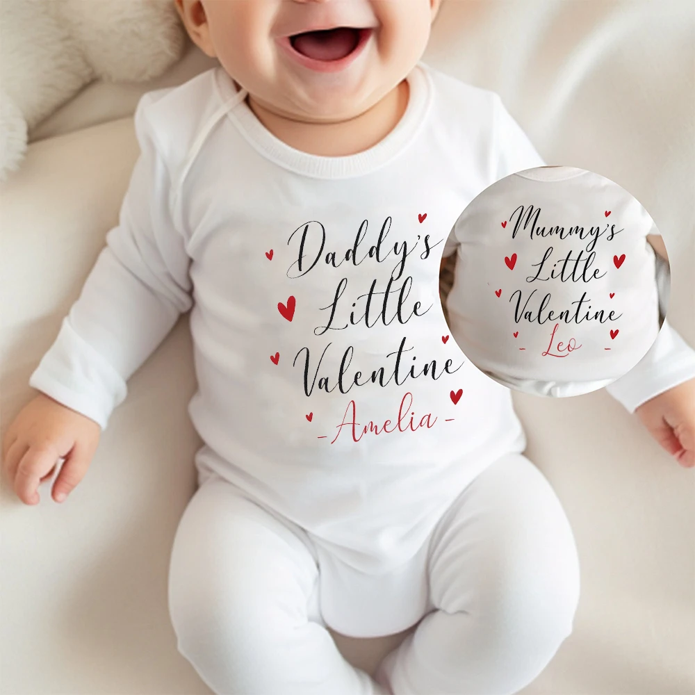 Comprar Pequeño San Valentín personalizado de papá/múvia, traje de dormir para bebé, primer traje del Día de San Valentín