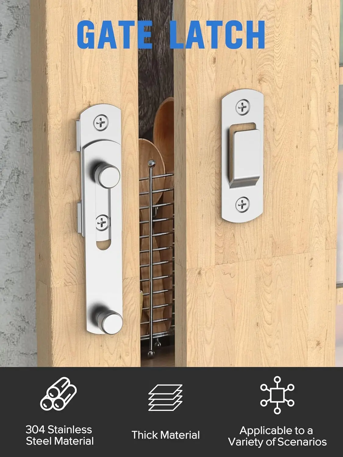 Amplia aplicación: la cerradura de puerta abatible es ideal para puertas de granja, jaulas para mascotas pequeñas, cobertizos, cabañas, ventanas, gabinetes, garajes, puertas de granero, etc.Ofrece protección confiable contra intrusos.