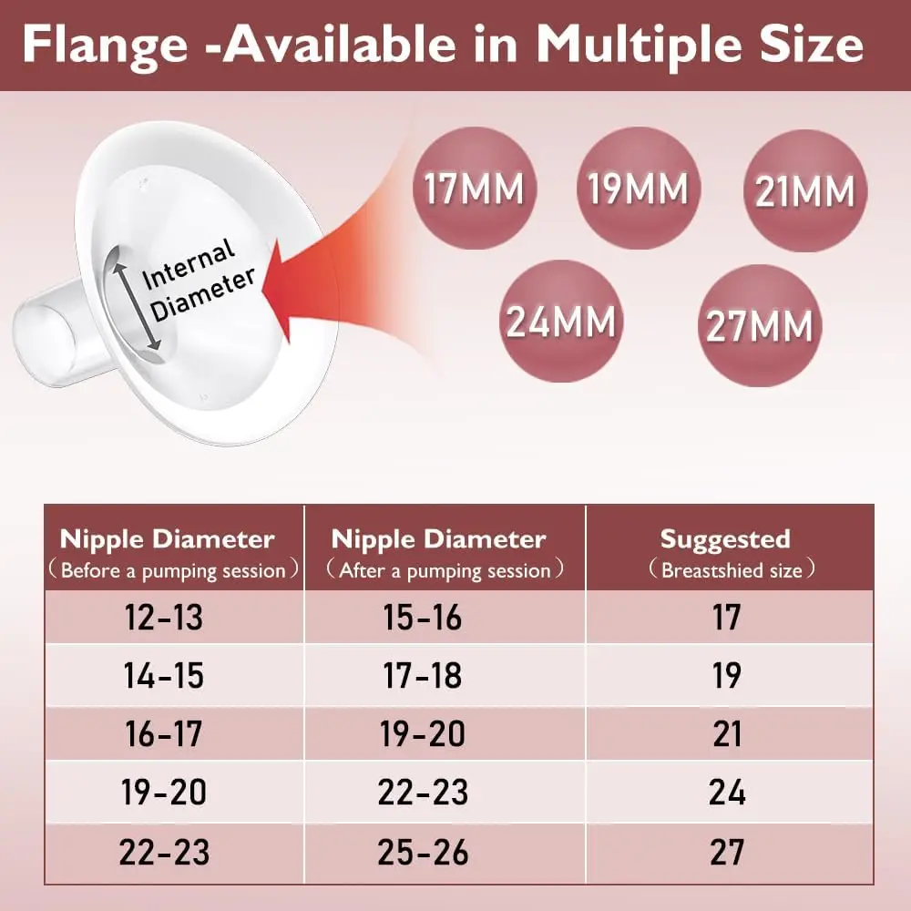 【Disponible en varios tamaños】: Los protectores para senos están disponibles en cinco opciones de tamaño, incluidas 17 mm, 19 mm, 21 mm, 24 mm, 27 mm, lo que permite que cada mamá que amamanta elija el ajuste más cómodo para su cuerpo y evite molestias durante las sesiones de extracción.