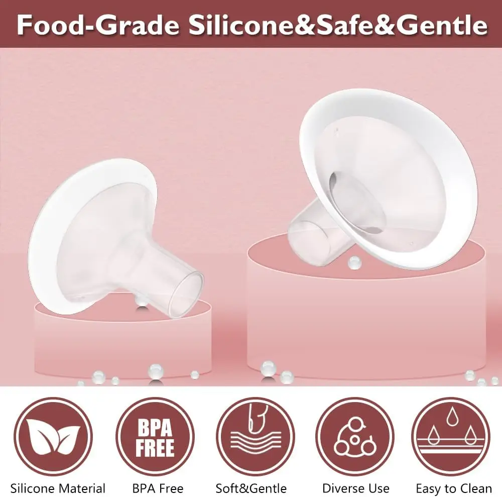Seguridad del material, fácil de limpiar: estas bridas suaves están hechas de materiales de calidad alimentaria duraderos, sin BPA, sin fugas, suaves e inodoros, lo que garantiza que sea seguro tanto para la madre como para el bebé durante las sesiones de lactancia y extracción. Además, es fácil de limpiar y se puede esterilizar hirviendo o utilizando un esterilizador a vapor para mayor seguridad.