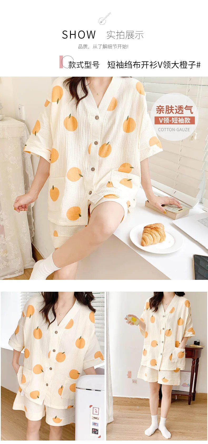 Comprar Pijama de lactancia para embarazadas, gasa fina de manga corta, bata de confinamiento, algodón, dos piezas, Verano
