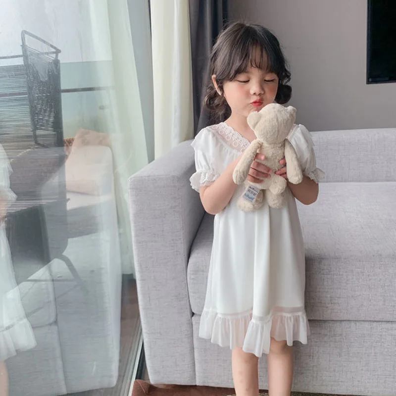 Comprar Pijamas de algodón absorbentes para niños, ropa de casa transpirable, pantalones de manga corta, trajes de estilo princesa, Verano