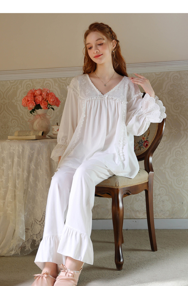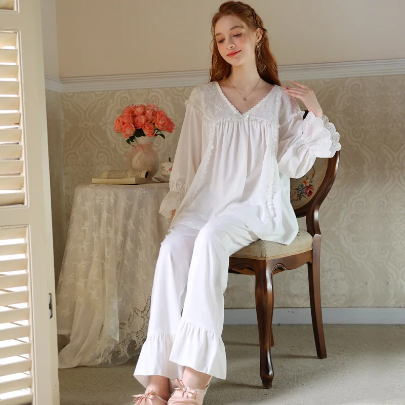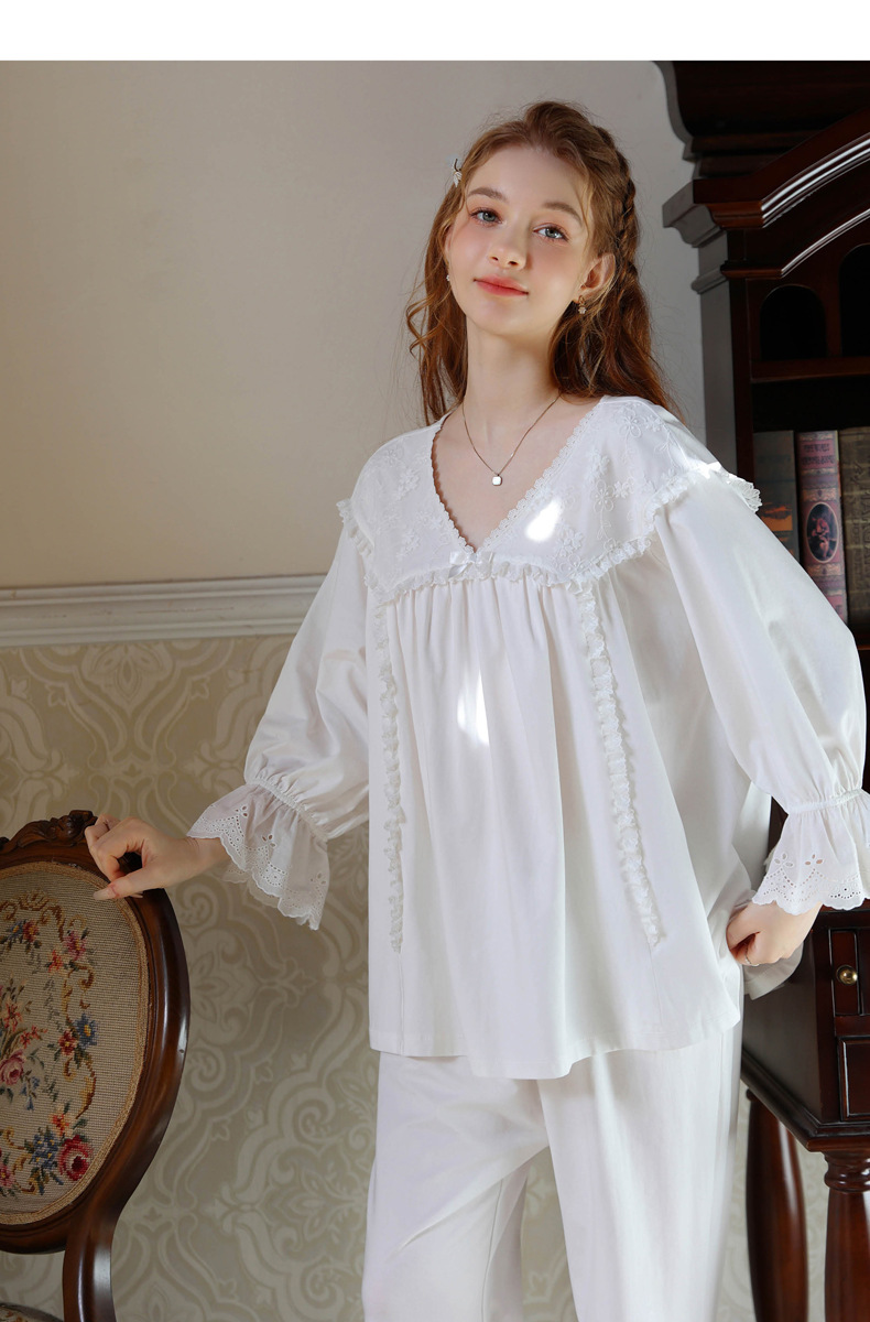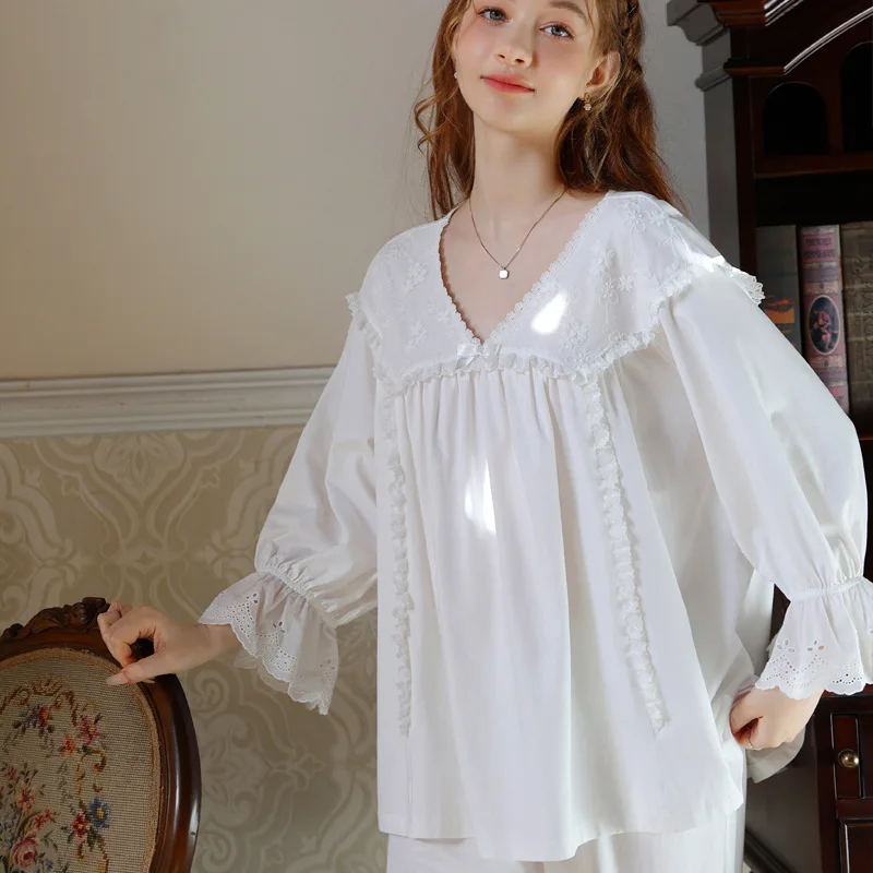 Pijamas blancos de gasa de algodón para primavera y otoño, conjunto de estilo palaciego para mujer, ropa de dormir bonita Hanfu de talla grande para servicio doméstico