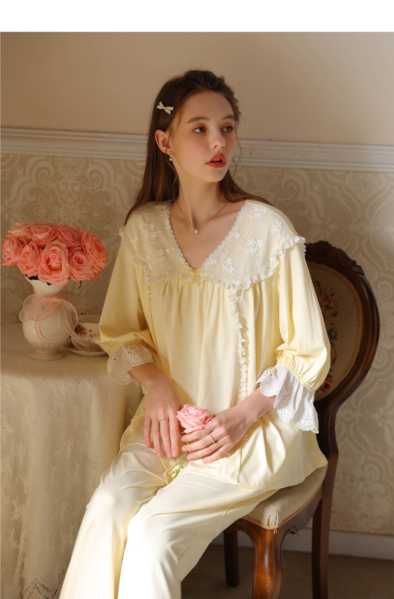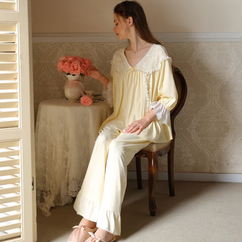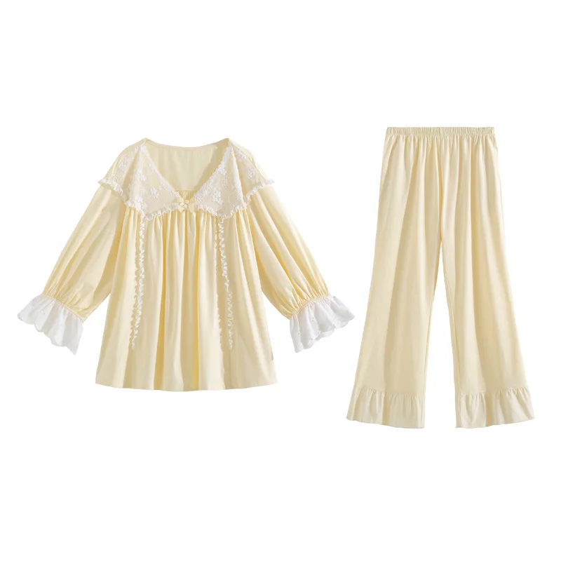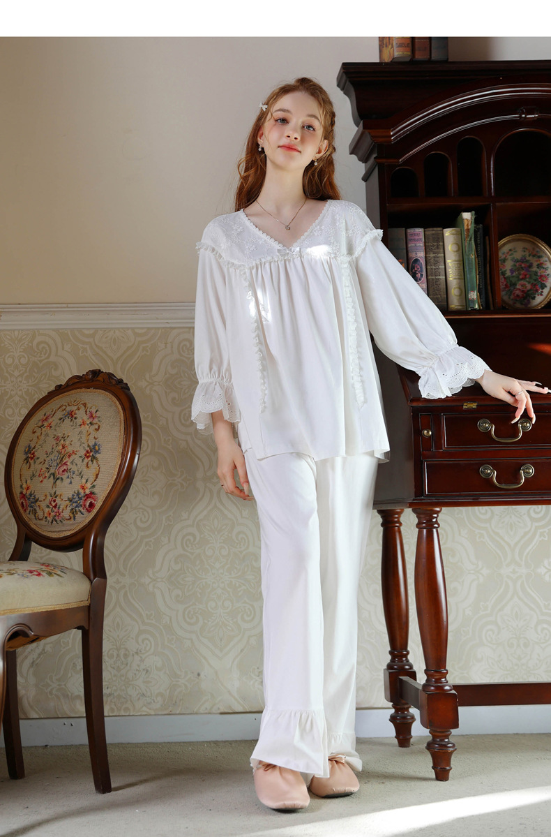 Pijamas blancos de gasa de algodón para primavera y otoño, conjunto de estilo palaciego para mujer, ropa de dormir bonita Hanfu de talla grande para servicio doméstico