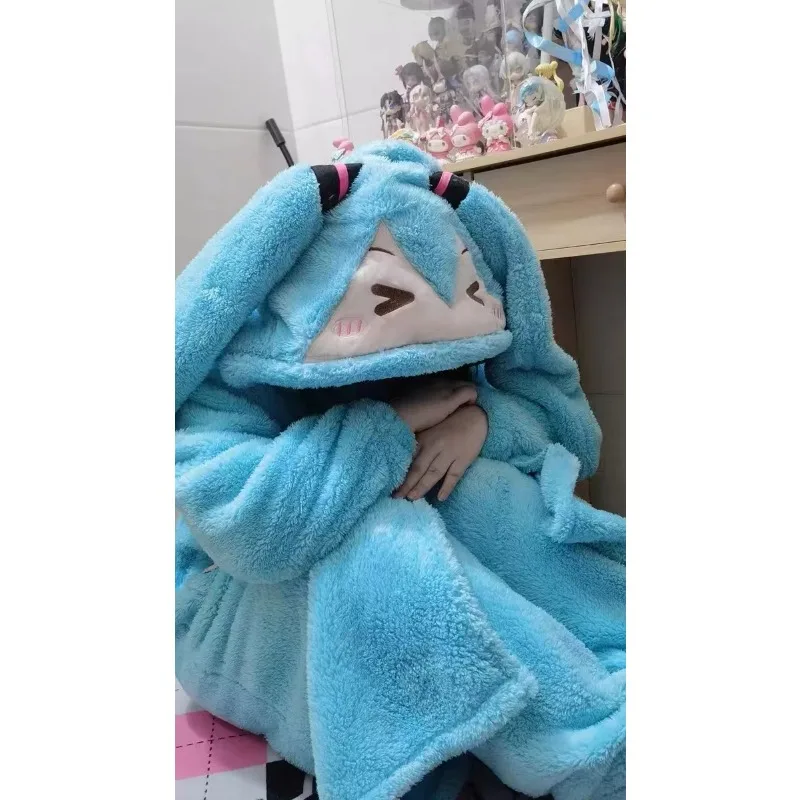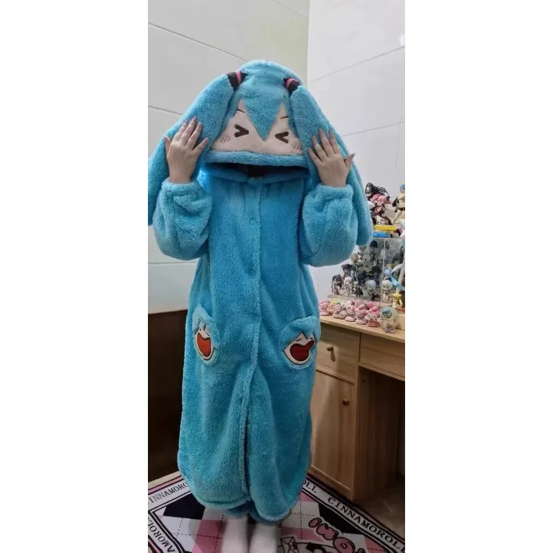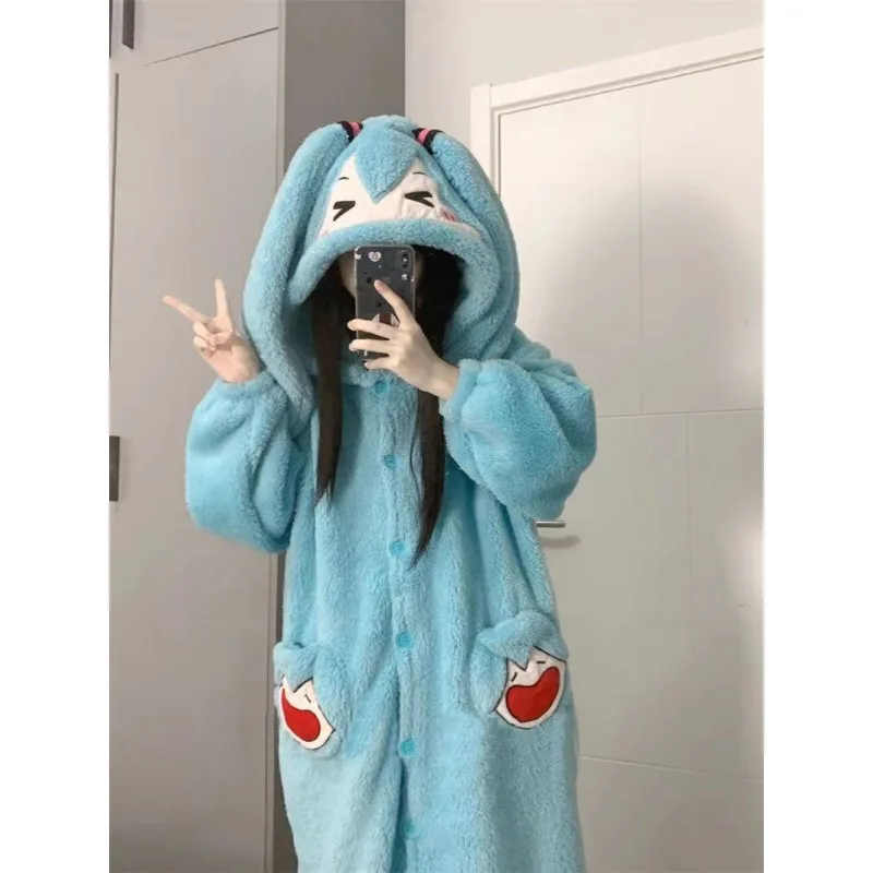 Pijamas de dibujos animados Hatsune Miku para mujer, camisón de terciopelo Coral grueso, conjuntos de pijamas casuales para el hogar, regalos de cumpleaños, Otoño, nuevo