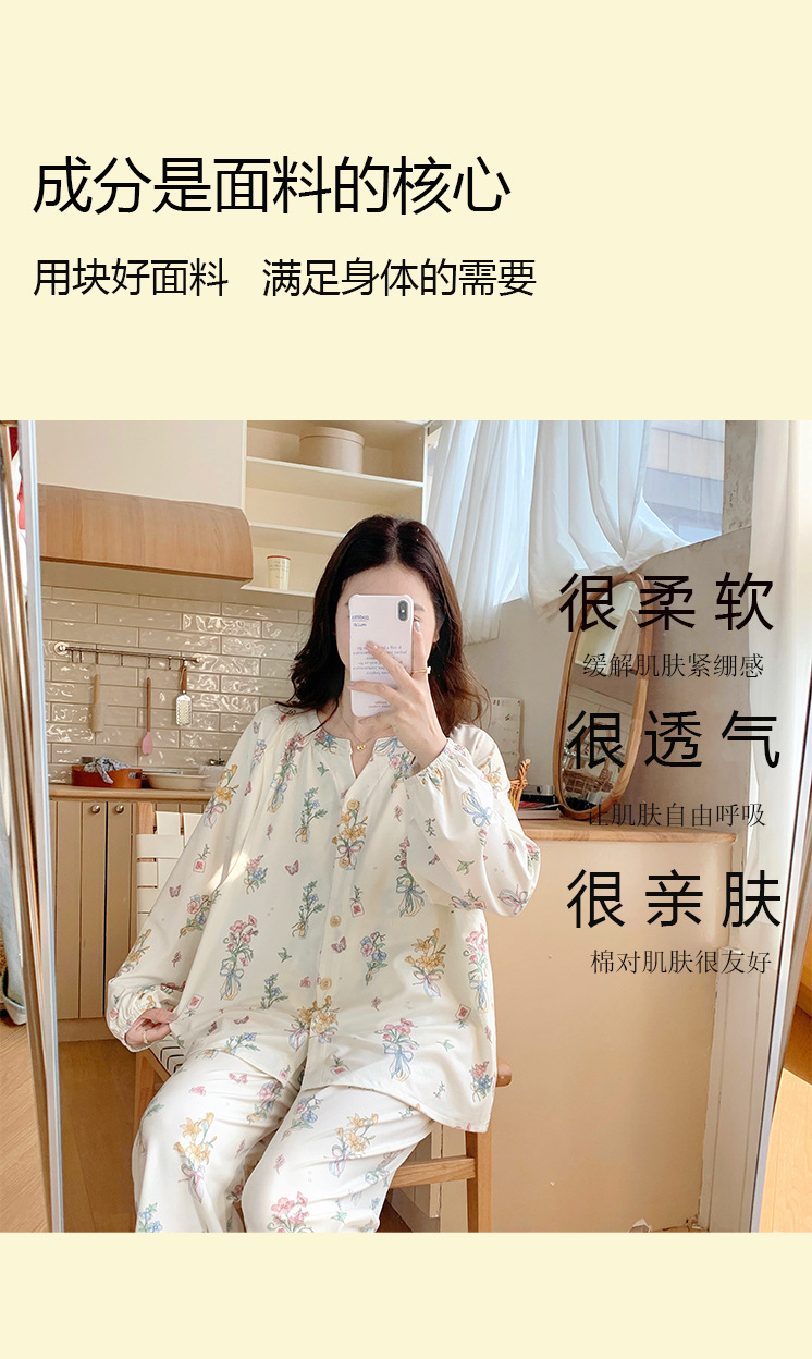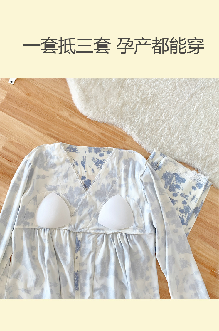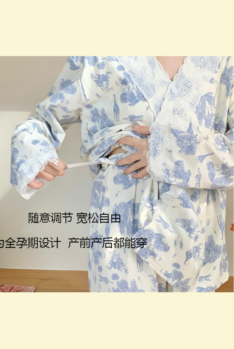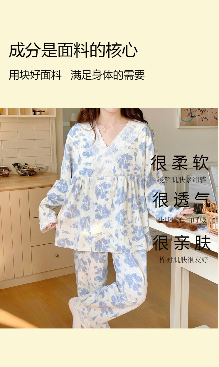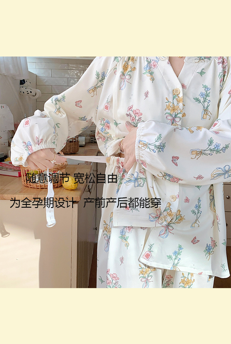 Pijamas de maternidad con diseño de cuello en V para amamantar, ropa de dormir de Otoño Invierno para mujeres embarazadas, ropa de embarazo, lactancia posparto