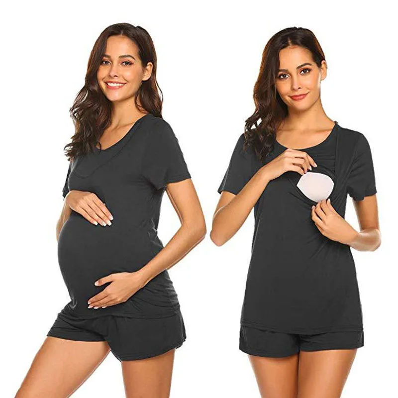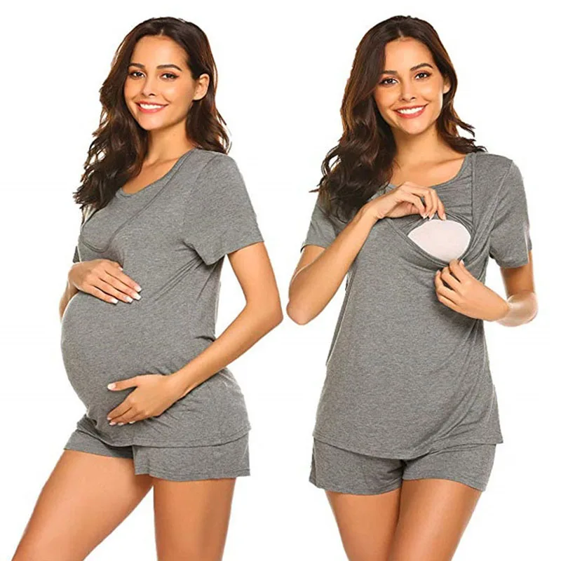 Pijamas de maternidad sueltos de verano, ropa de dormir para amamantar, lactancia, ropa de casa, ropa de dormir de lactancia, conjunto de ropa informal para embarazo