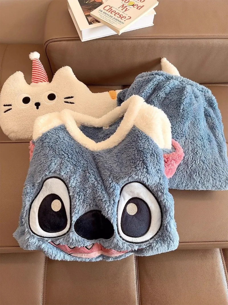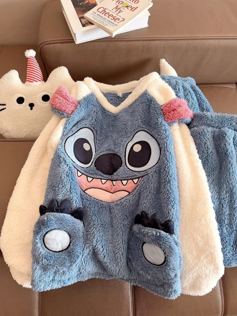Pijamas de punto para mujer, ropa de abrigo cálida de dibujos animados de Anime grueso de lana Coral para otoño e invierno, regalo para el hogar para estudiantes de Disney