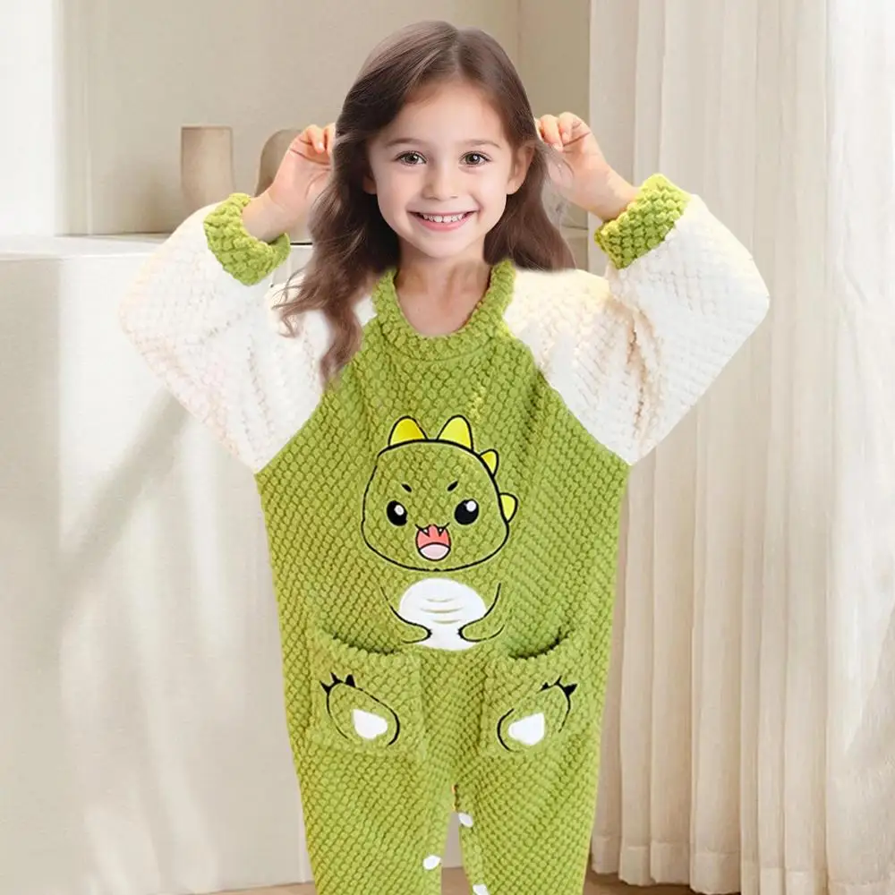 2. Con bolsillos pequeños: con un lindo patrón de dinosaurio y bolsillos con patrón de garras, este pijama mono garantiza calidez y al mismo tiempo proporciona almacenamiento para juguetes o refrigerios, mejorando la diversión y la funcionalidad.