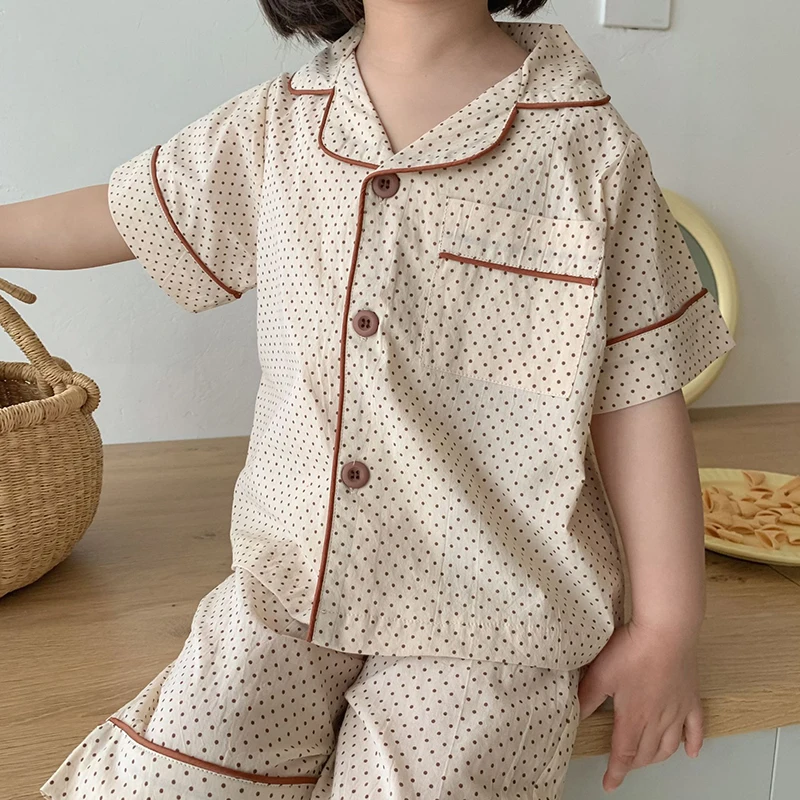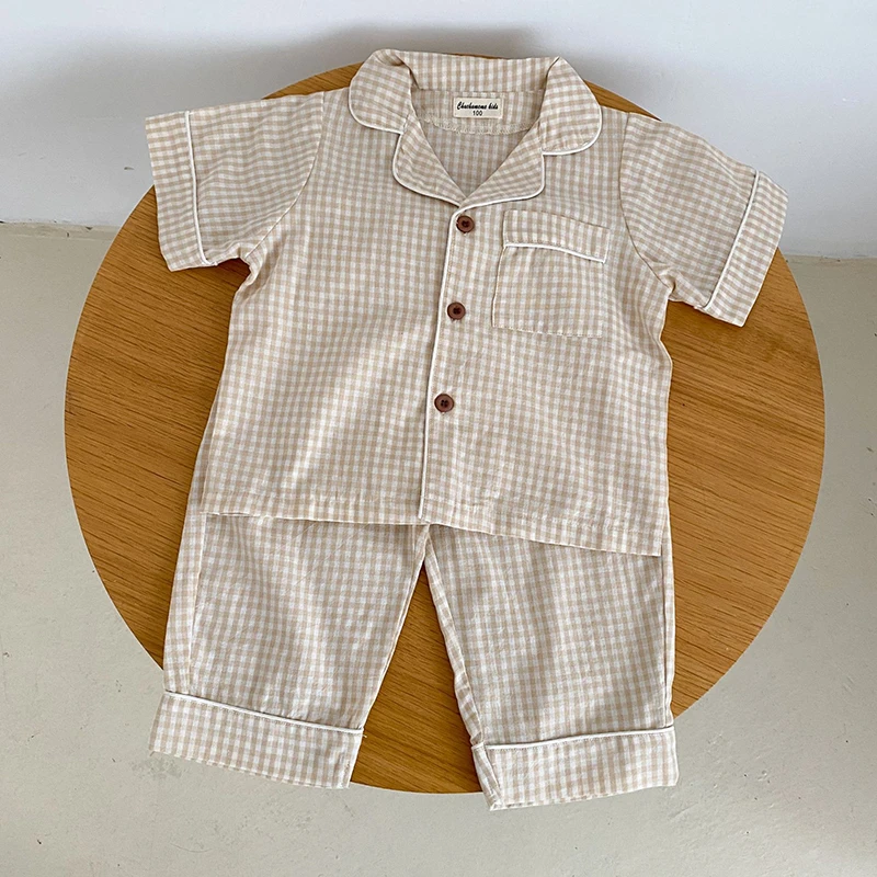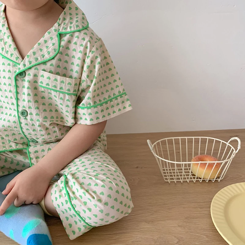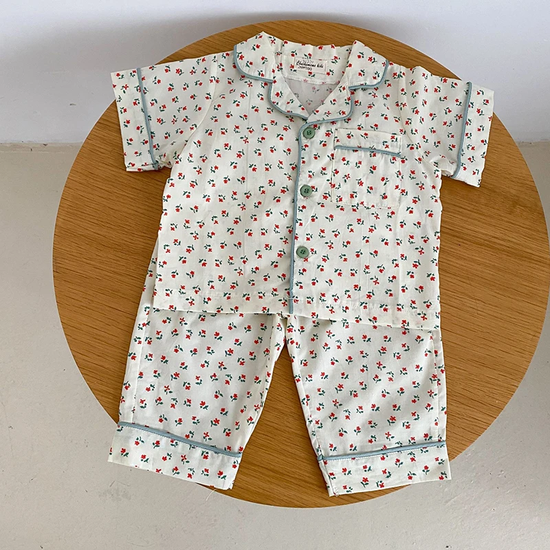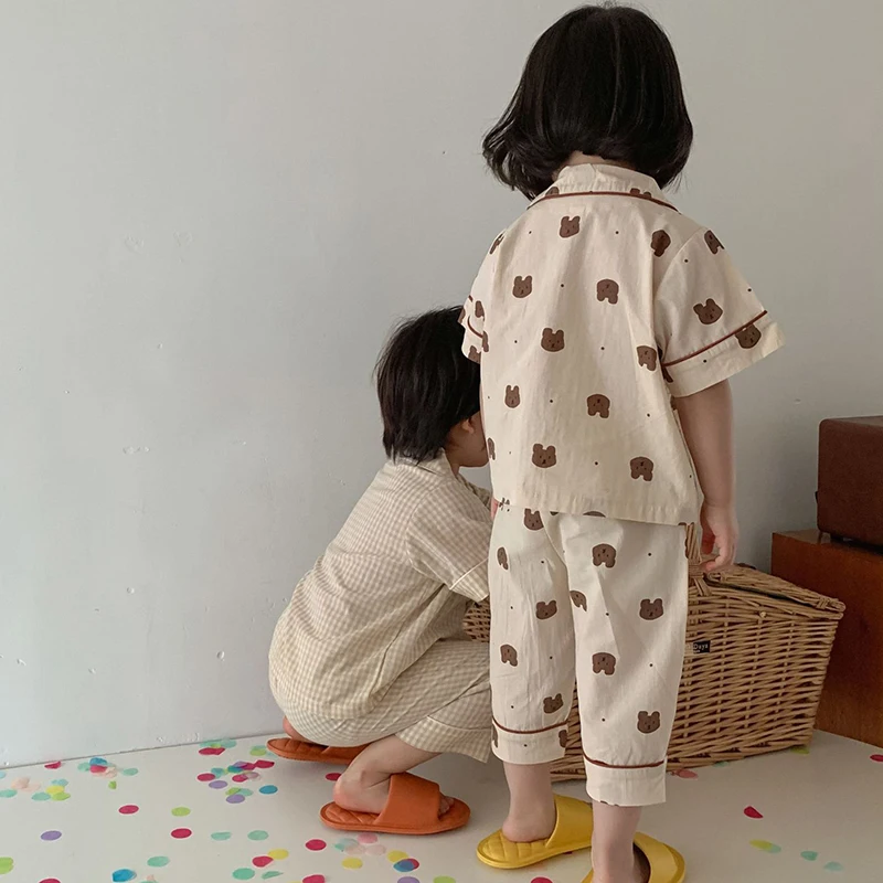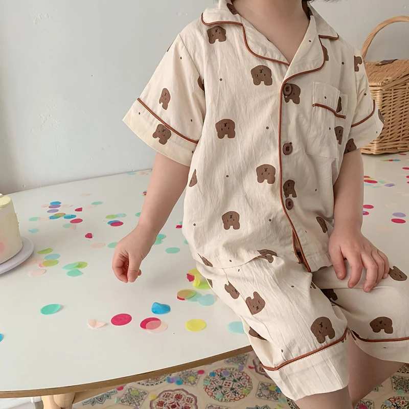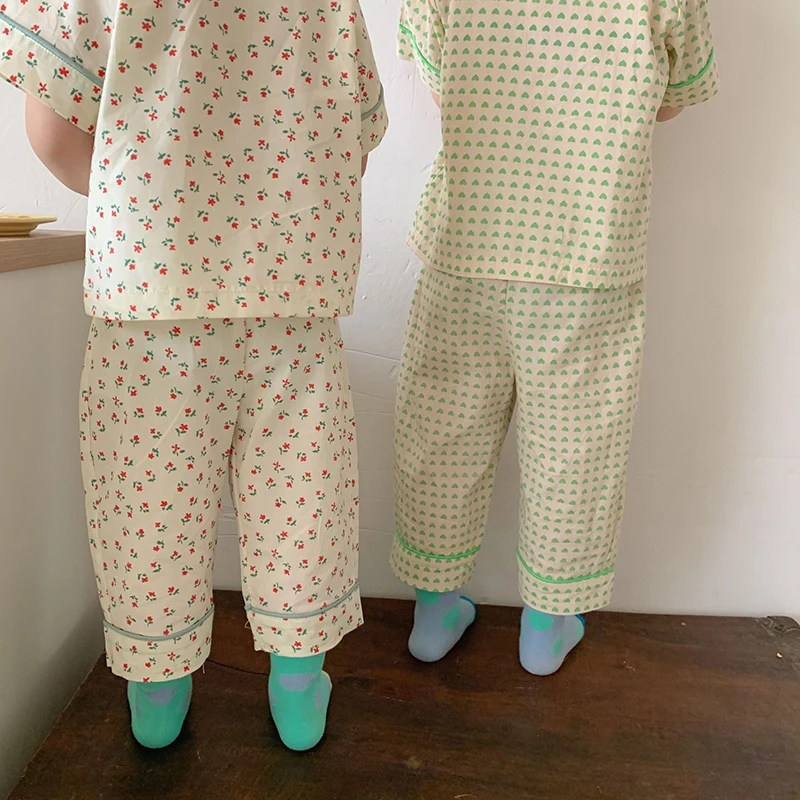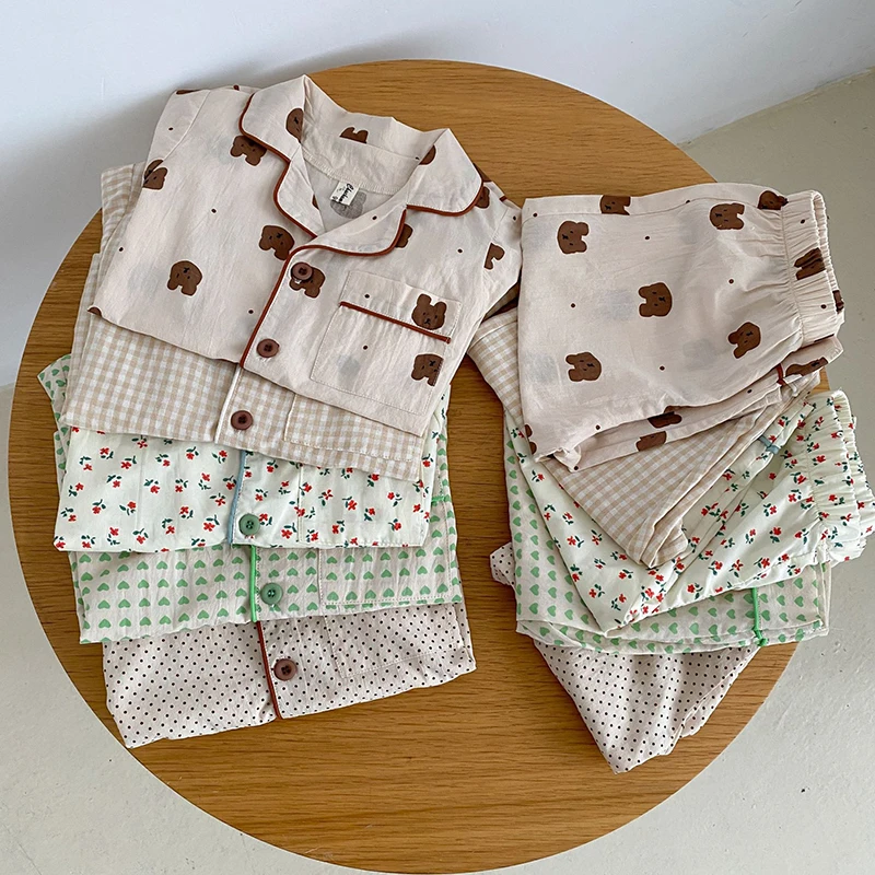 Pijamas de verano para niños y niñas, traje con estampado coreano, ropa de dormir informal de algodón