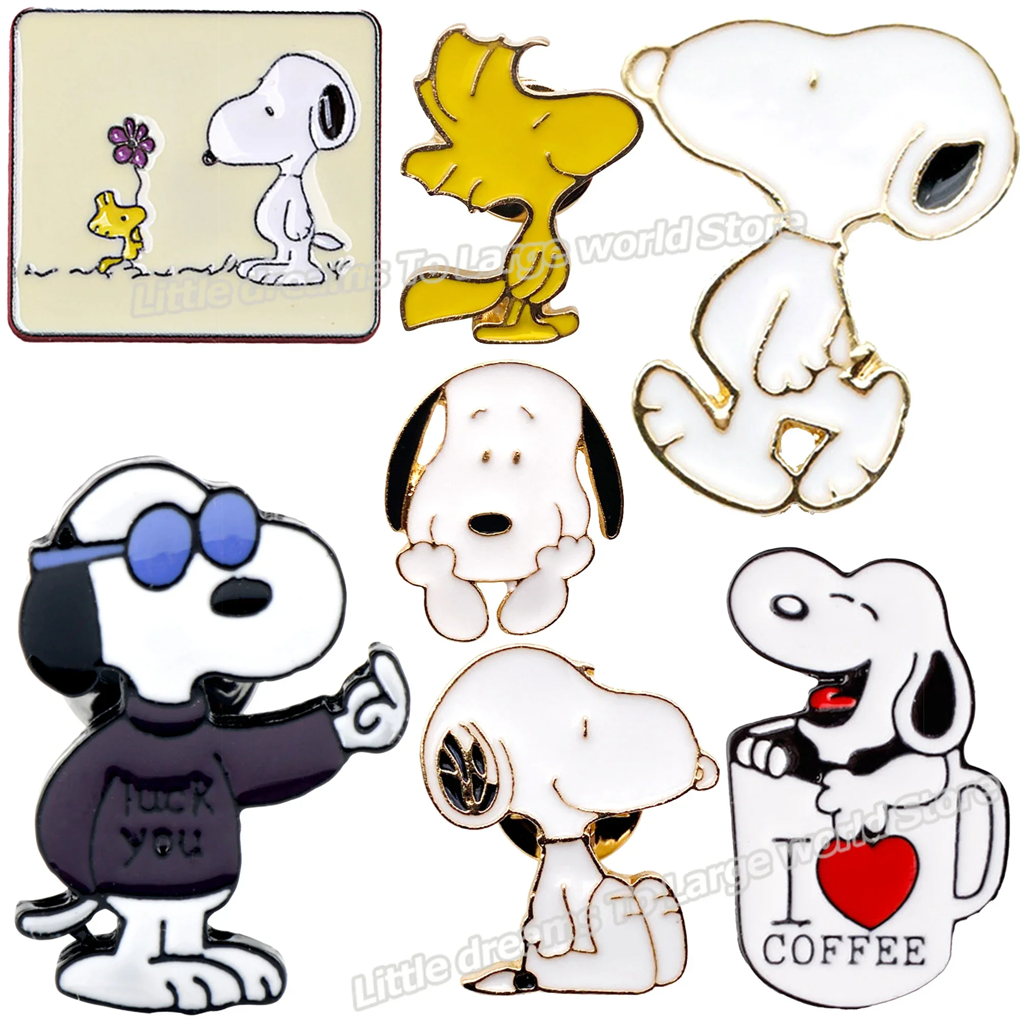 Pin esmaltado de Snoopy de dibujos animados, broche personalizado de perro Charlie, bolso, Pin de solapa, insignia divertida de dibujos animados, regalo de joyería para niños