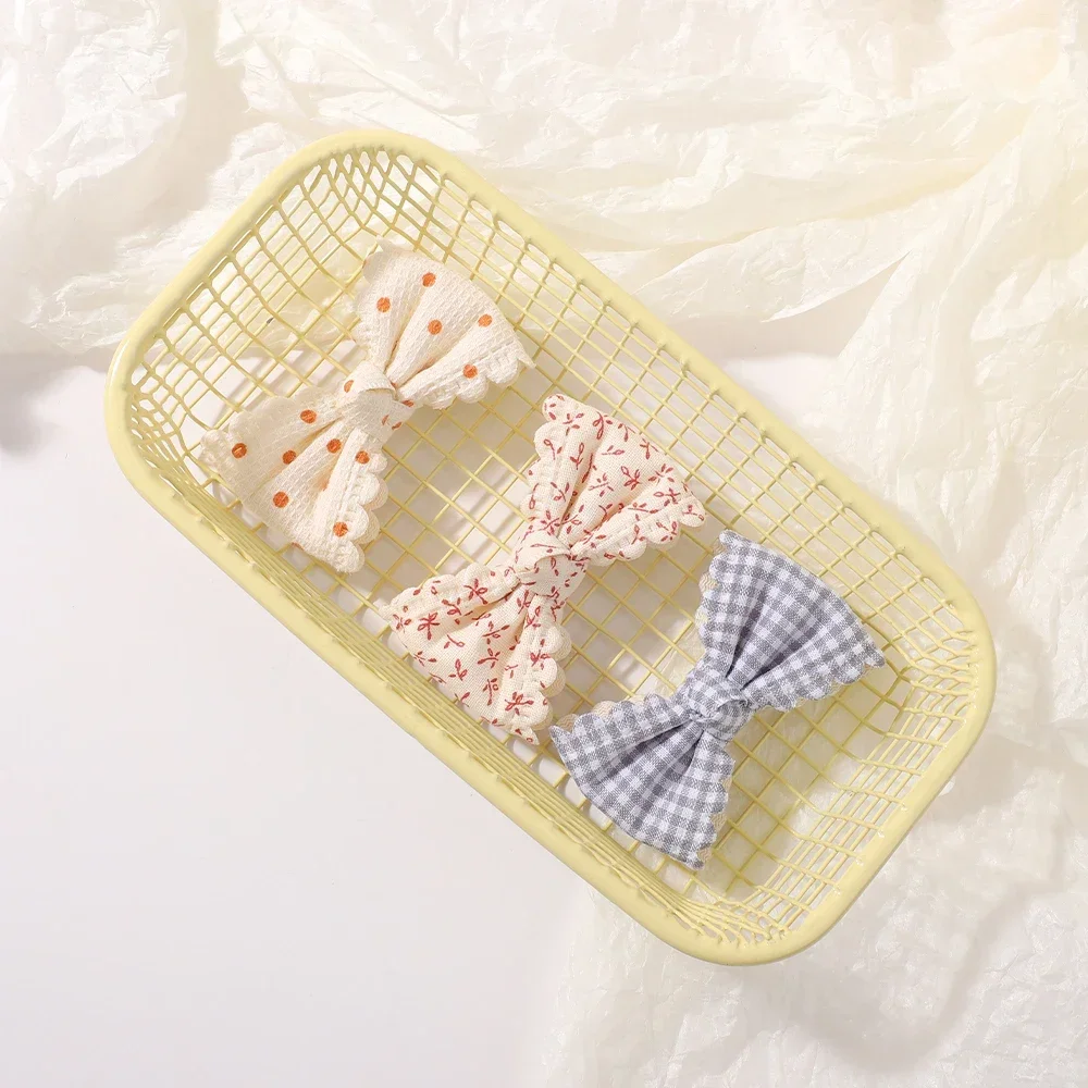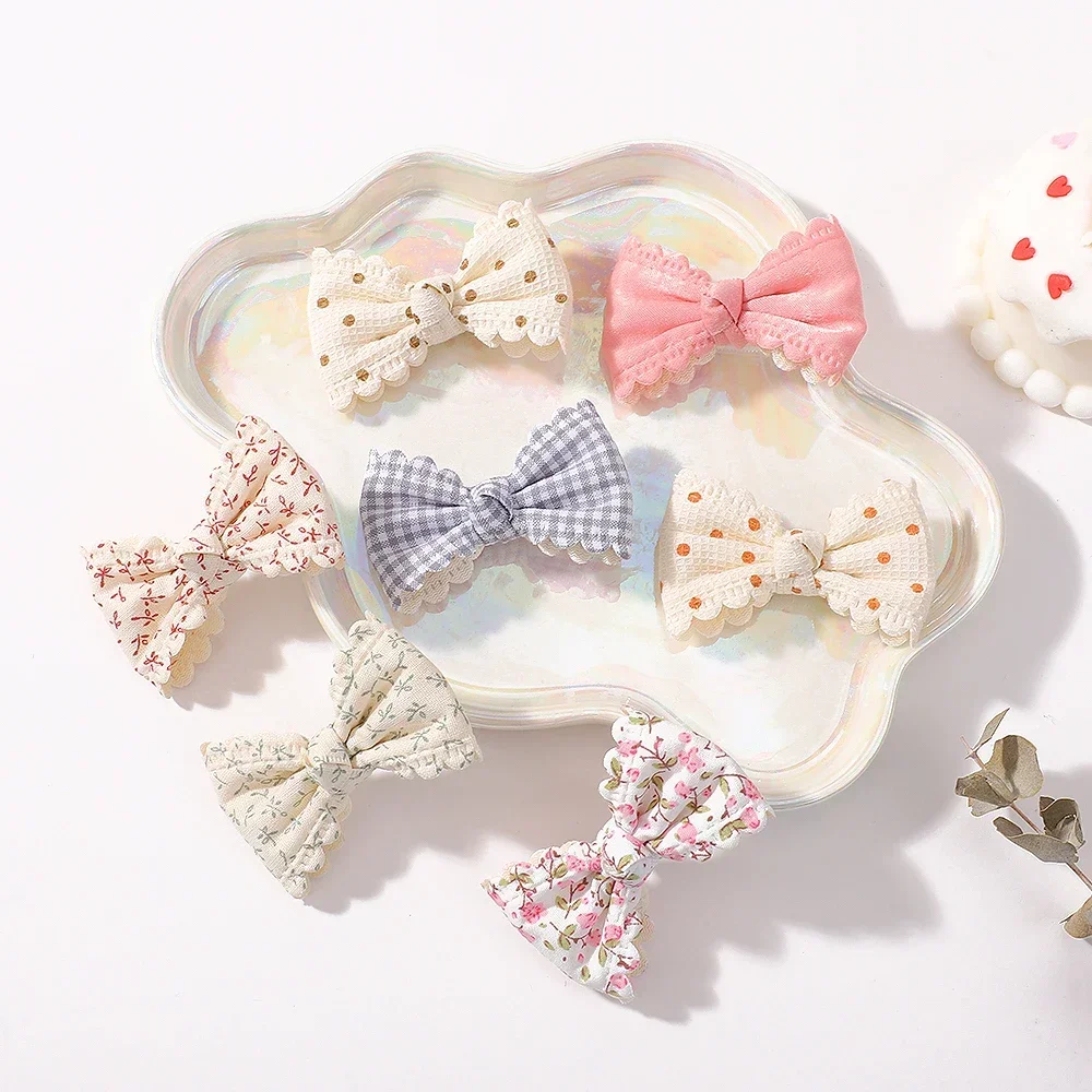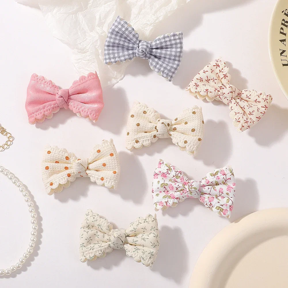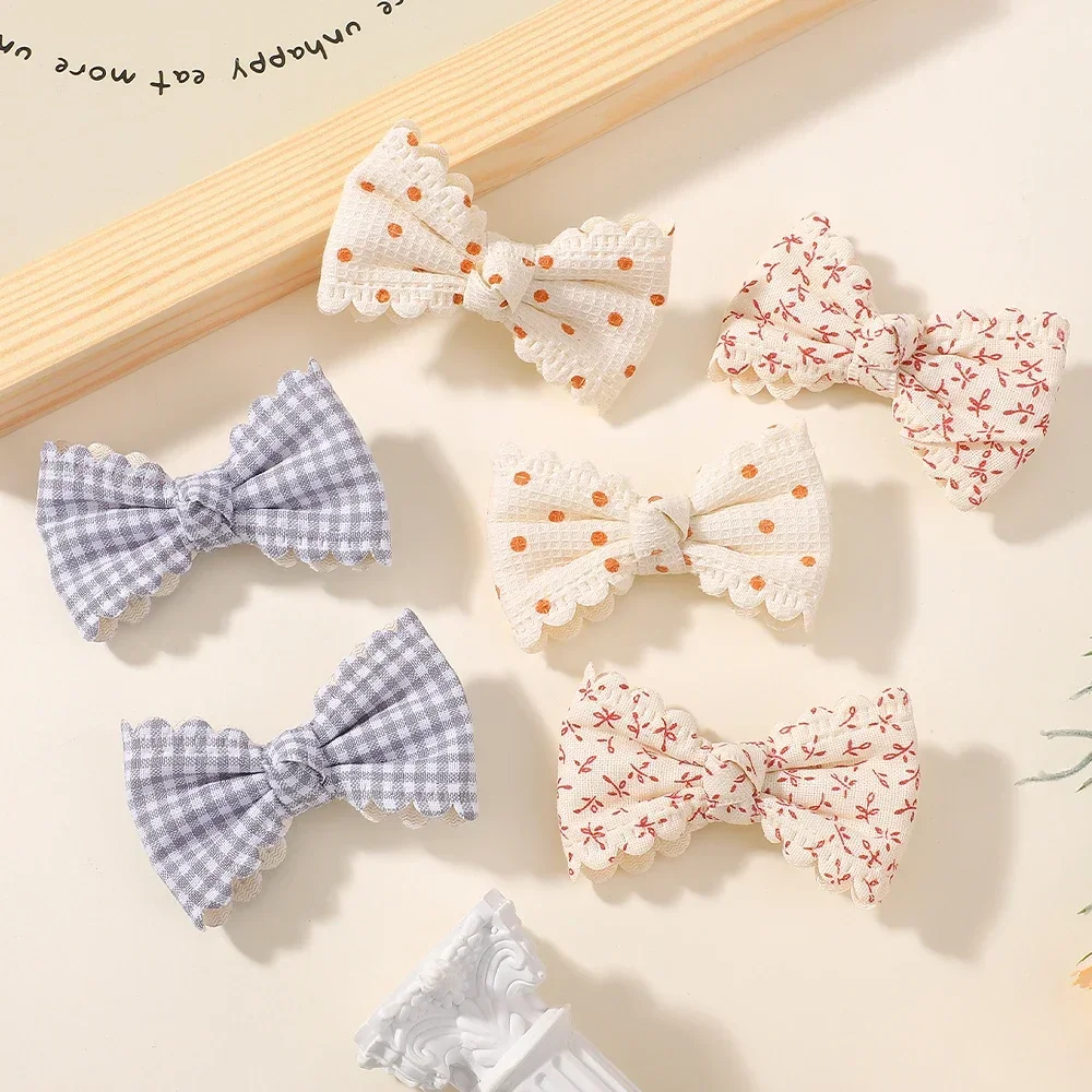 Pinces à cheveux en coton pour enfants, 2 pièces/ensemble, nœuds mignons pour bébés filles, imprimés de fleurs à carreaux, pinces à cheveux d'été, Barrette, accessoires pour cheveux