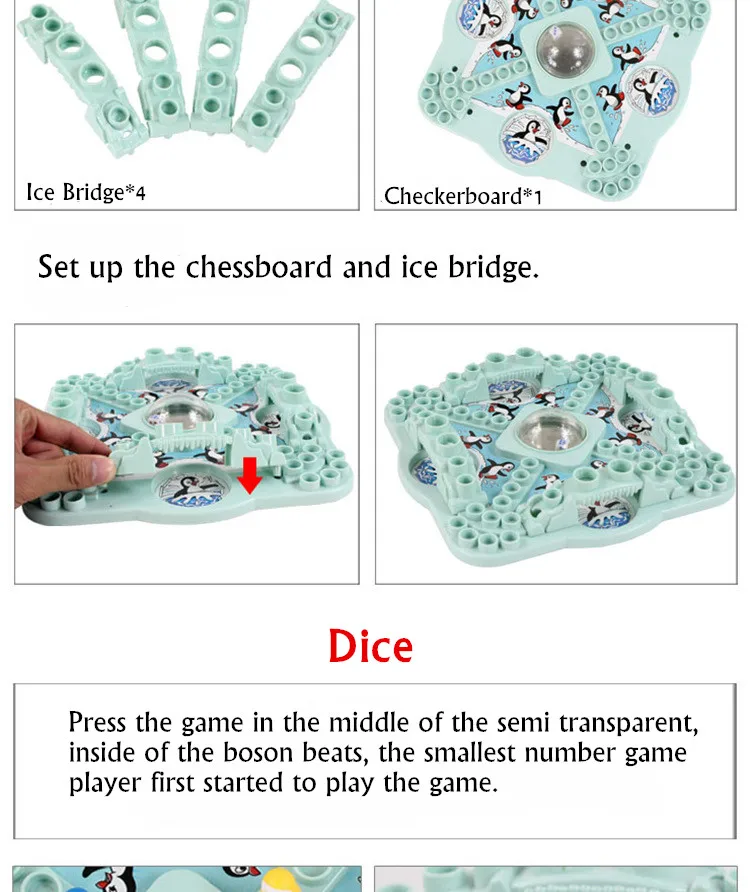 Reciba con la caja al por menor, ¡en buen paquete!Características: Mueva sus pingüinos alrededor del tablero. ¡Cuidado de que no caigan por los puentes helados!