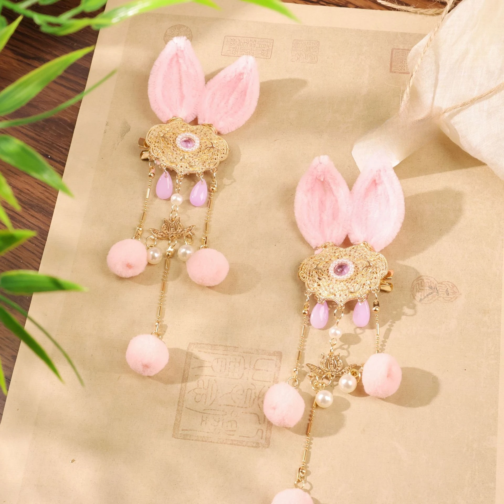 Pinza para el cabello para niños de estilo antiguo de Año Nuevo, estilo chino con borlas rosas, bonito diseño para niños, un accesorio festivo imprescindible para el cabello.