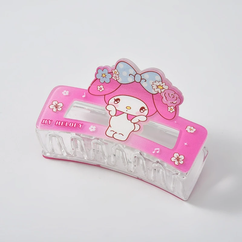 Pinza de pelo acrílica de dibujos animados Sanrio para niñas, lindo accesorio para el cabello, serie Cinnamoroll y Kuromi, resistente y suave para uso diario
