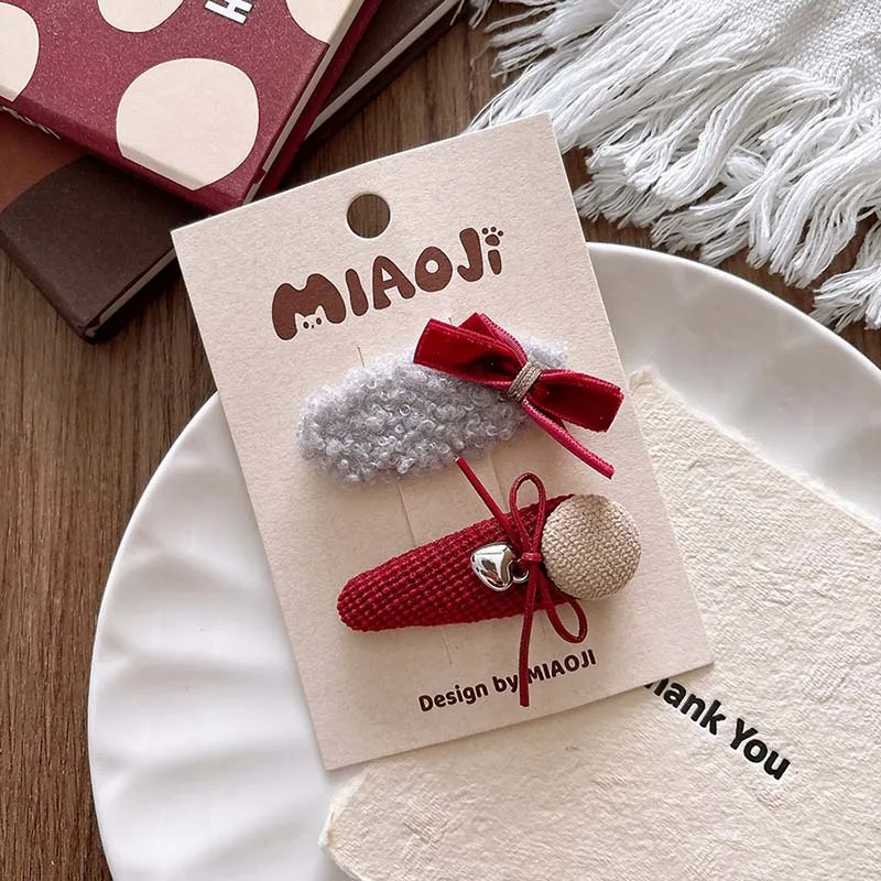 Pinza para el pelo coreana para niña, horquilla con agradable arco rojo de Año Nuevo para niño, flequillo roto para otoño e invierno, accesorios navideños para el cabello