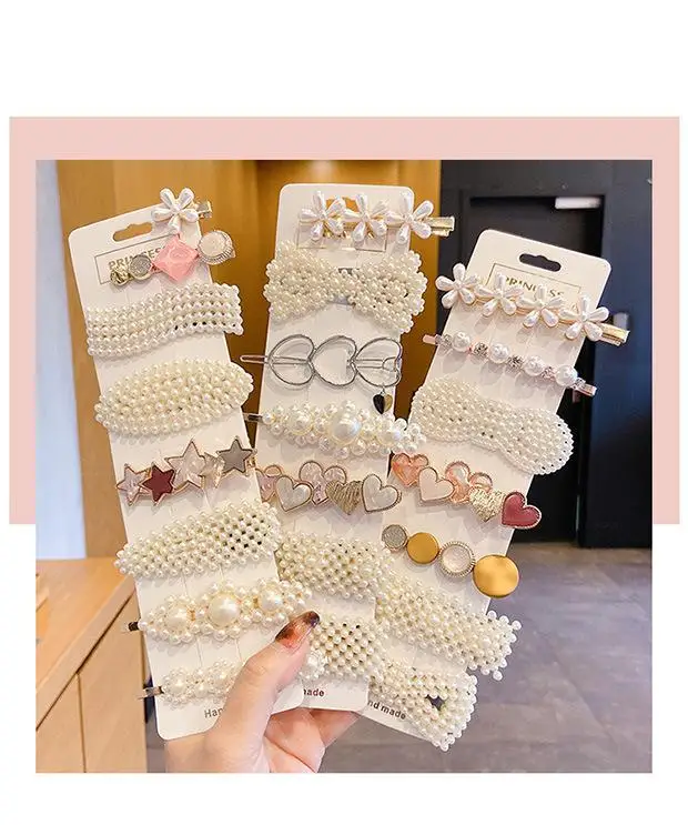 Comprar Pinza para el pelo de perlas para mujer y niña, horquilla geométrica con diamantes de imitación, pasadores de flores, accesorios para el cabello, joyería 2022