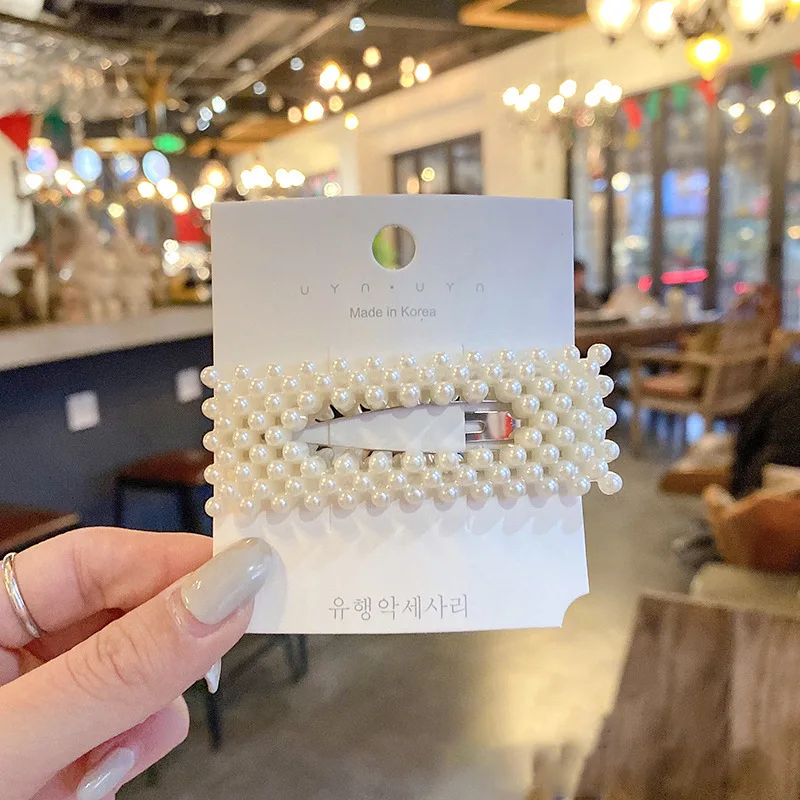 Comprar Pinza para el pelo de perlas para mujer y niña, horquilla geométrica con diamantes de imitación, pasadores de flores, accesorios para el cabello, joyería 2022