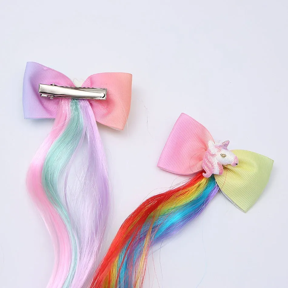 Comprar Pinzas para el cabello de arcoíris para niños, extensiones de cabello de unicornio para niñas y niños, soporte para cola de caballo, pasadores de princesa para bebé, accesorios para lazos para el cabello