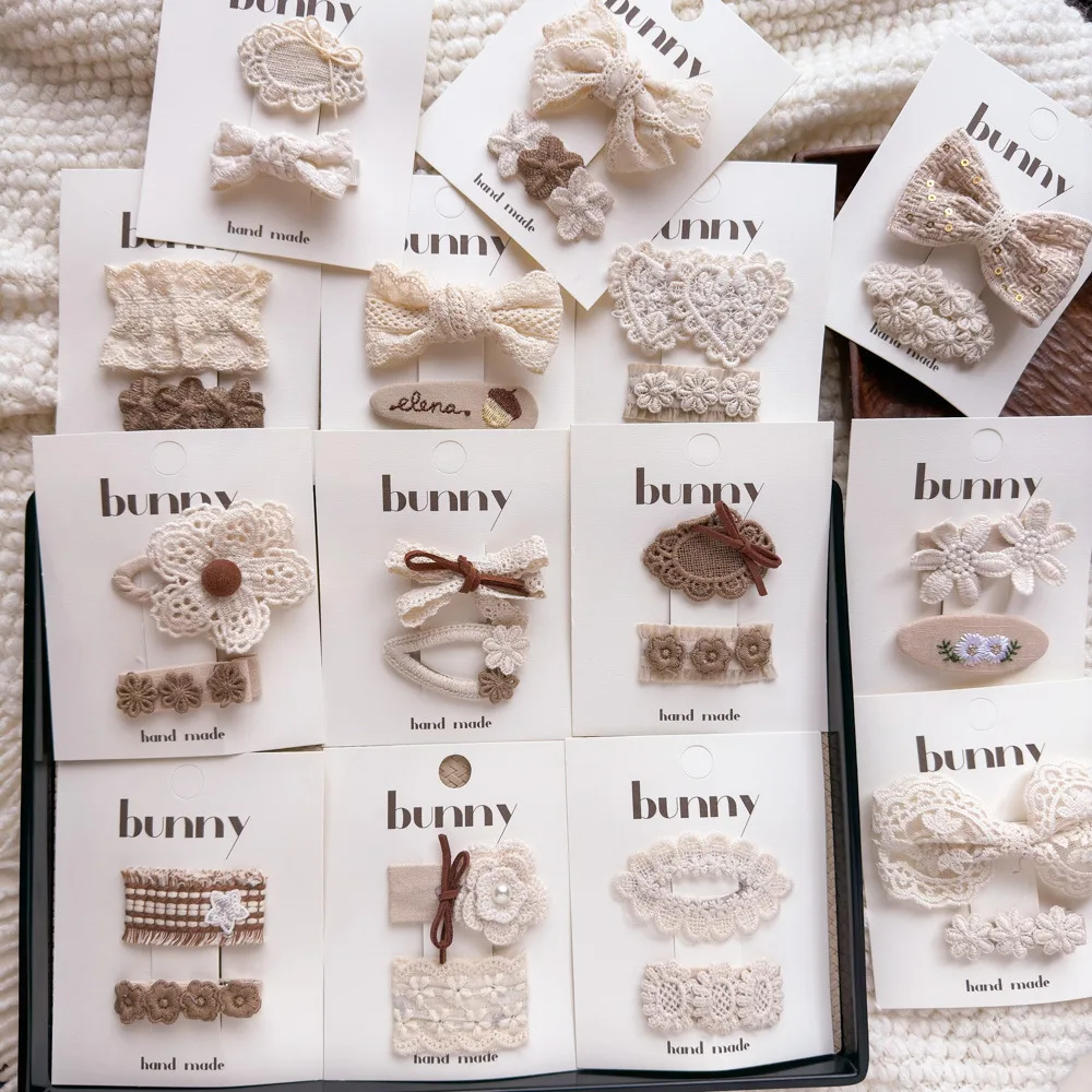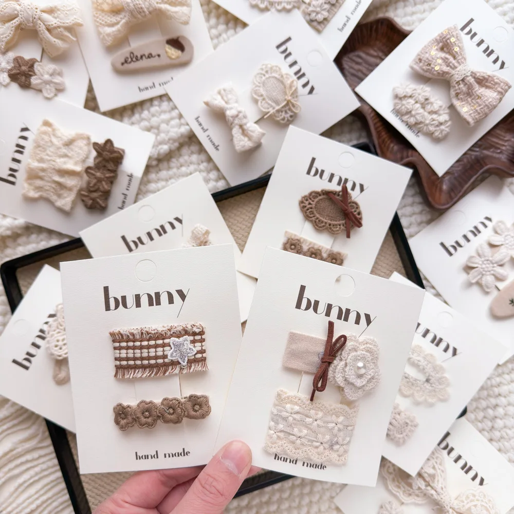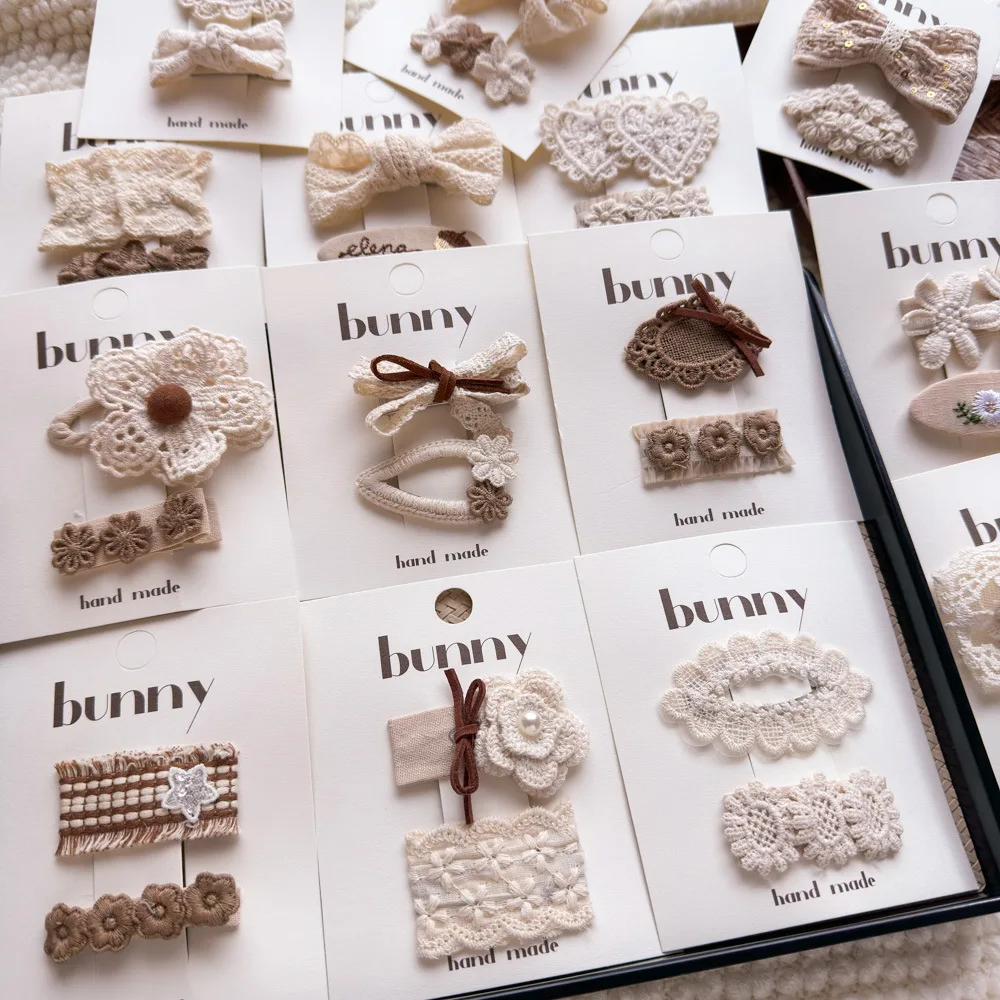 Pinzas para el cabello de flores de Color café con leche de encaje, horquillas bonitas y dulces para niños, Clip de borde con flequillo para niñas, Clips para peinados de estilo Retro