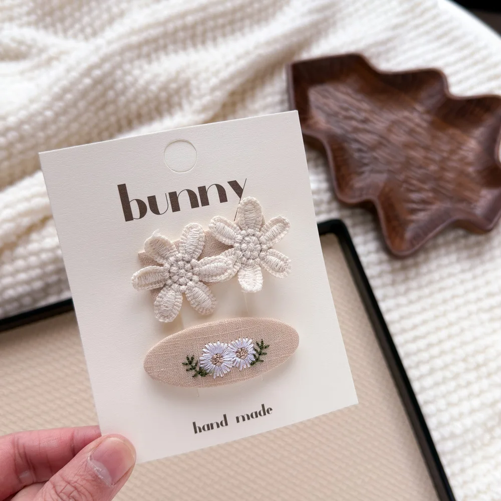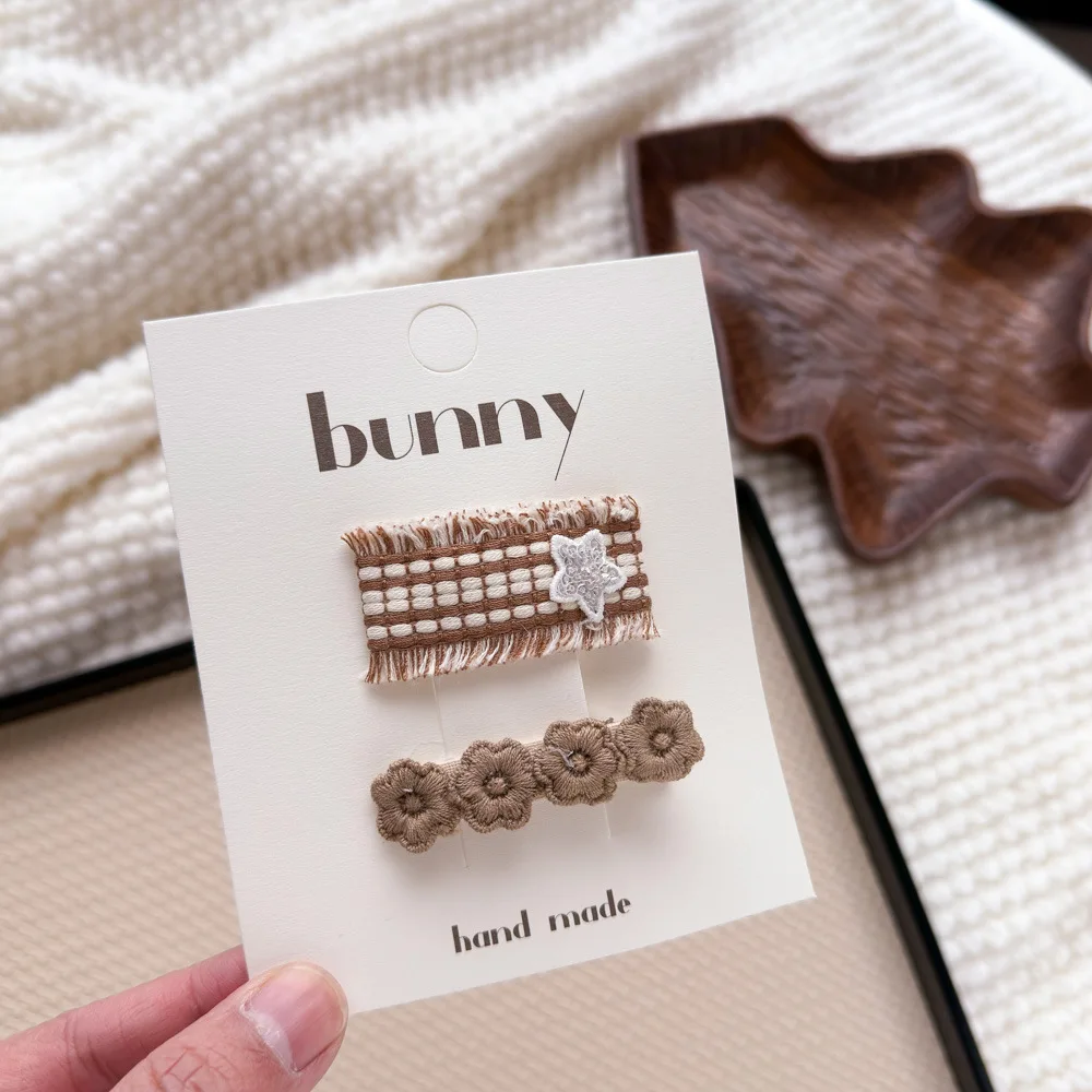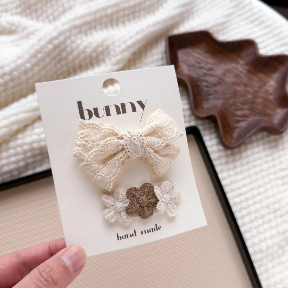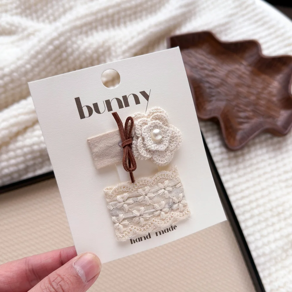 Pinzas para el cabello de flores de Color café con leche de encaje, horquillas bonitas y dulces para niños, Clip de borde con flequillo para niñas, Clips para peinados de estilo Retro