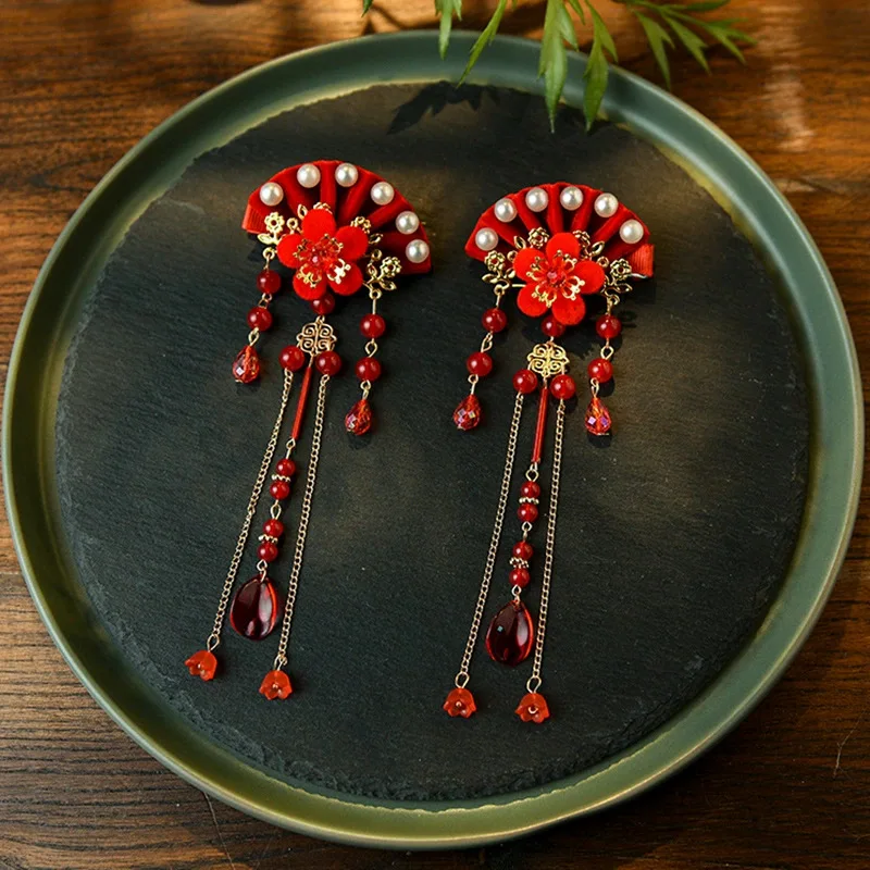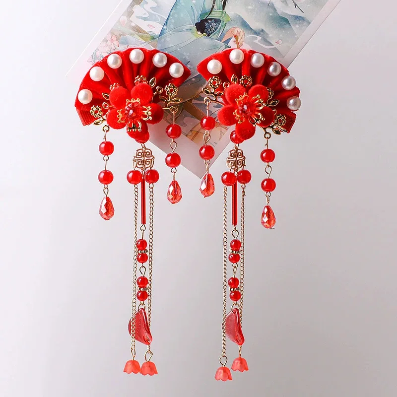 ¡Pinzas para el cabello Hanfu de Año Nuevo Chino para niñas! Diseño festivo de borla roja, elemento auspicioso, exquisito antideslizante, perfecto para Año Nuevo