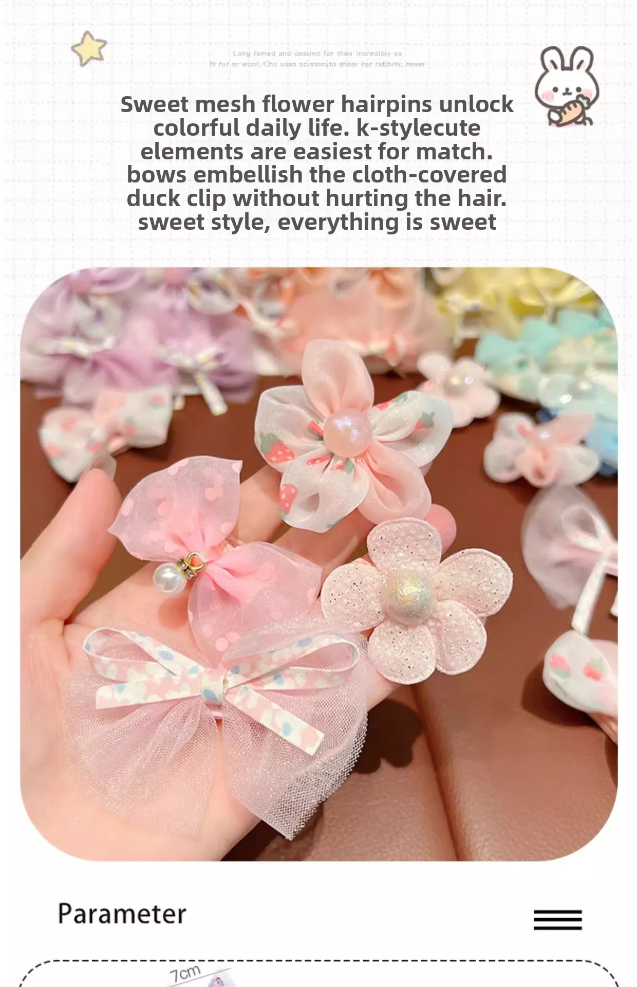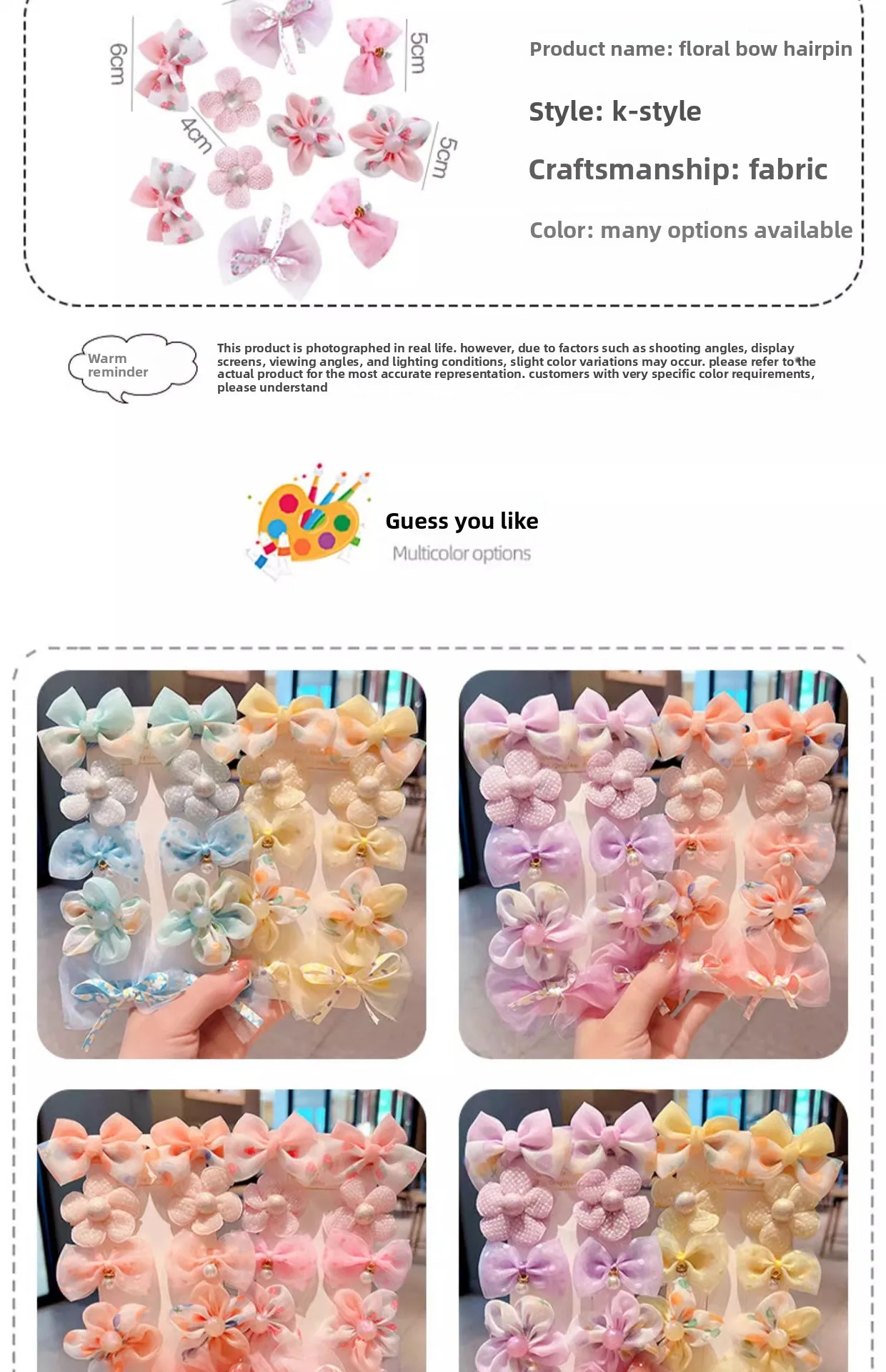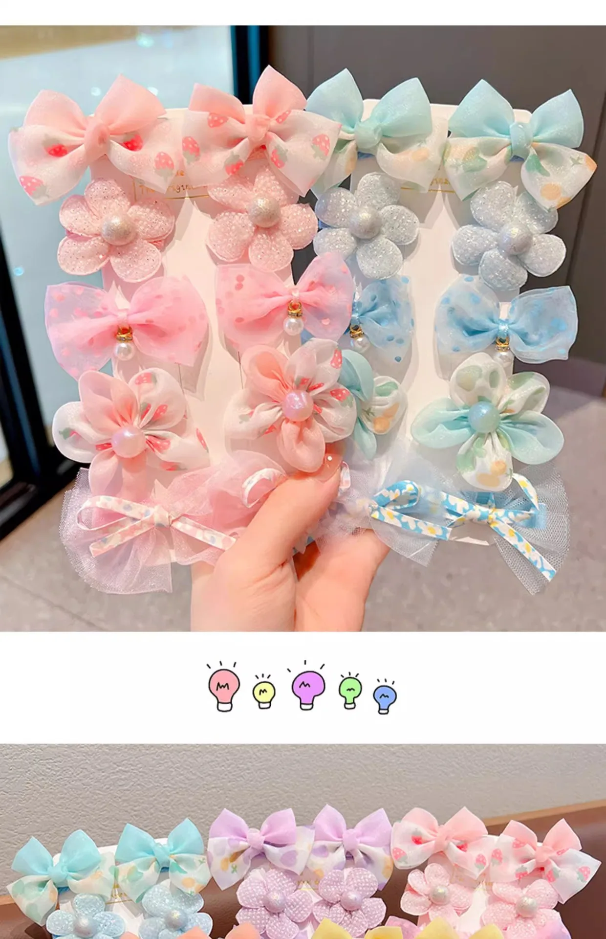 Pinzas para el cabello con lazo de princesa para niñas, pinzas BB de flores de tela, lindos accesorios para el cabello para niños pequeños, flequillo antideslizante y clips Flyaway.