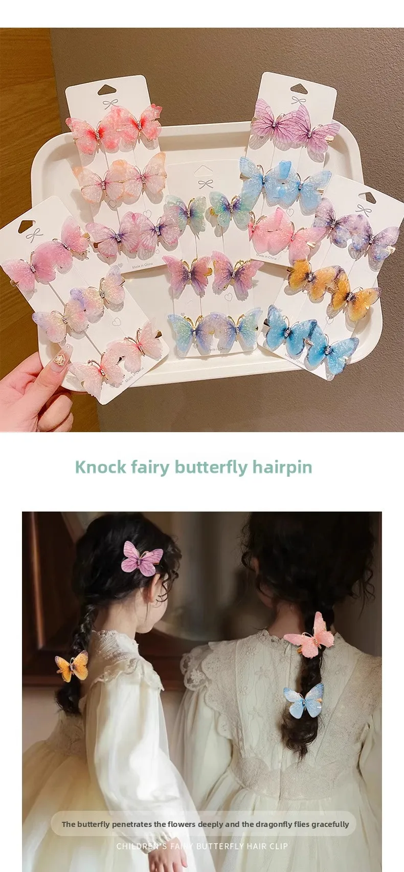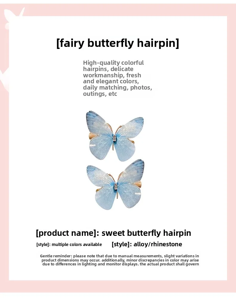 Pinzas para el cabello de mariposa Súper Hada para niñas, pasadores lindos, accesorios para el cabello encantadores, pinzas para flequillo lateral para niños pequeños y niñas pequeñas.