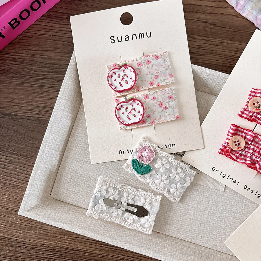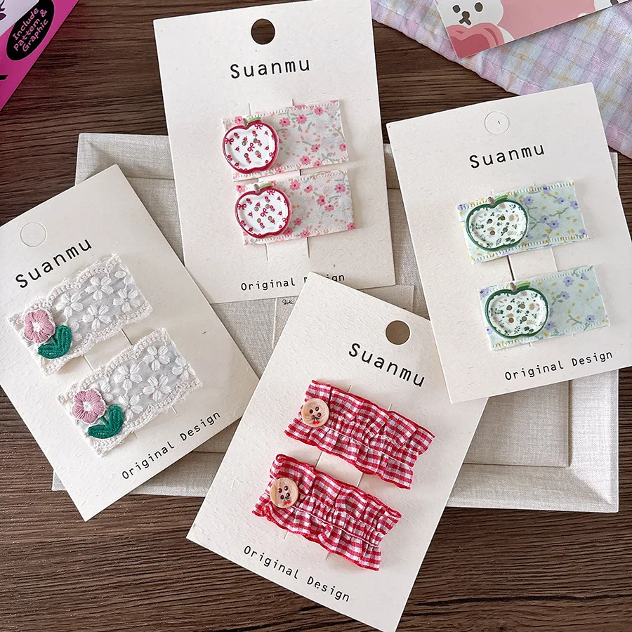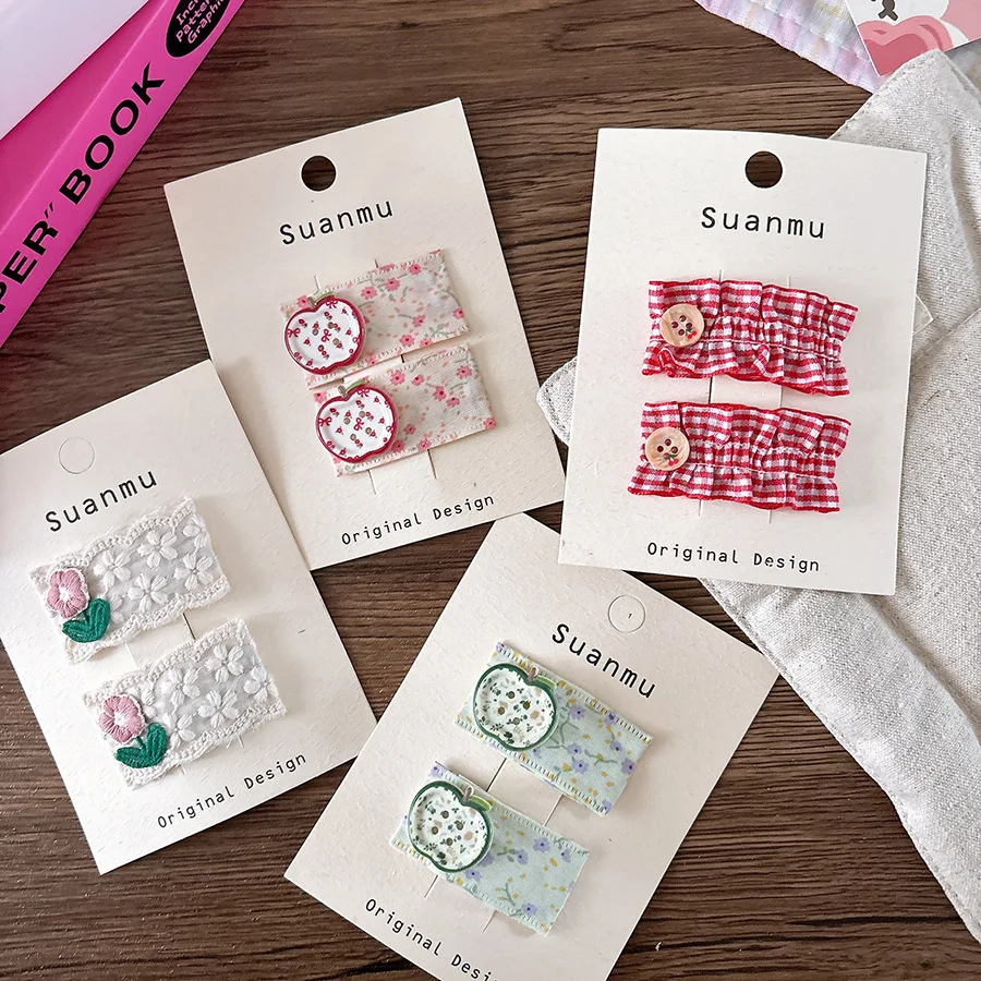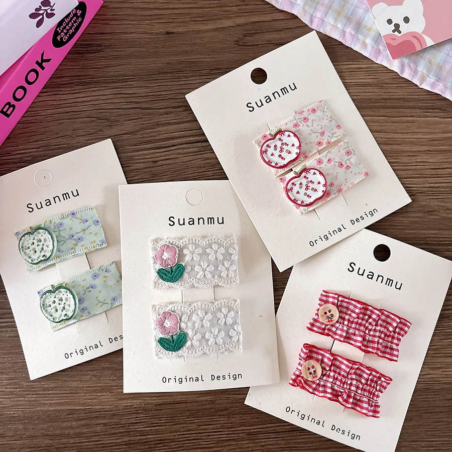 Pinzas para el cabello de tela Floral dulce de estilo coreano para niñas, Mini pasadores a presión bordados de encaje, bonitos Clips BB para bebés y niños, flequillo lateral