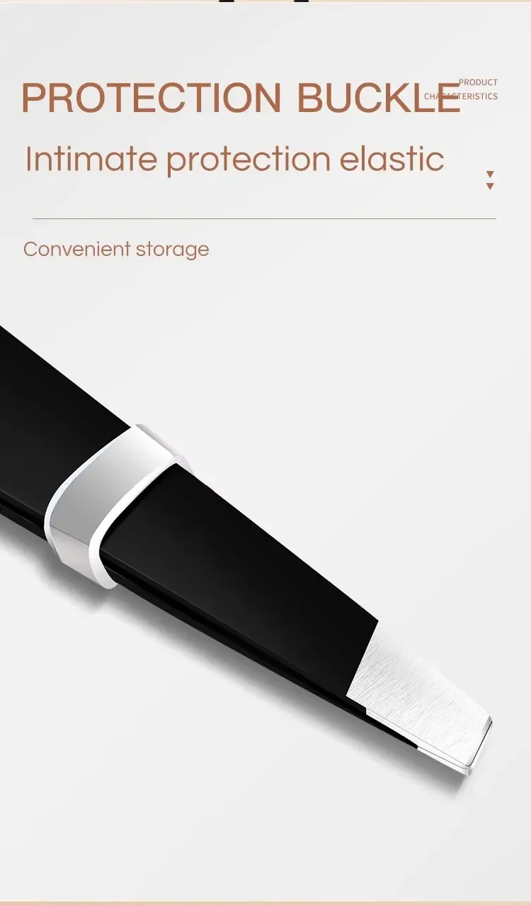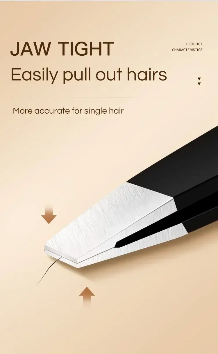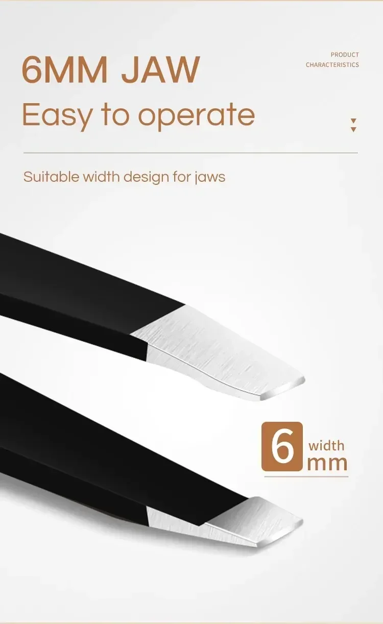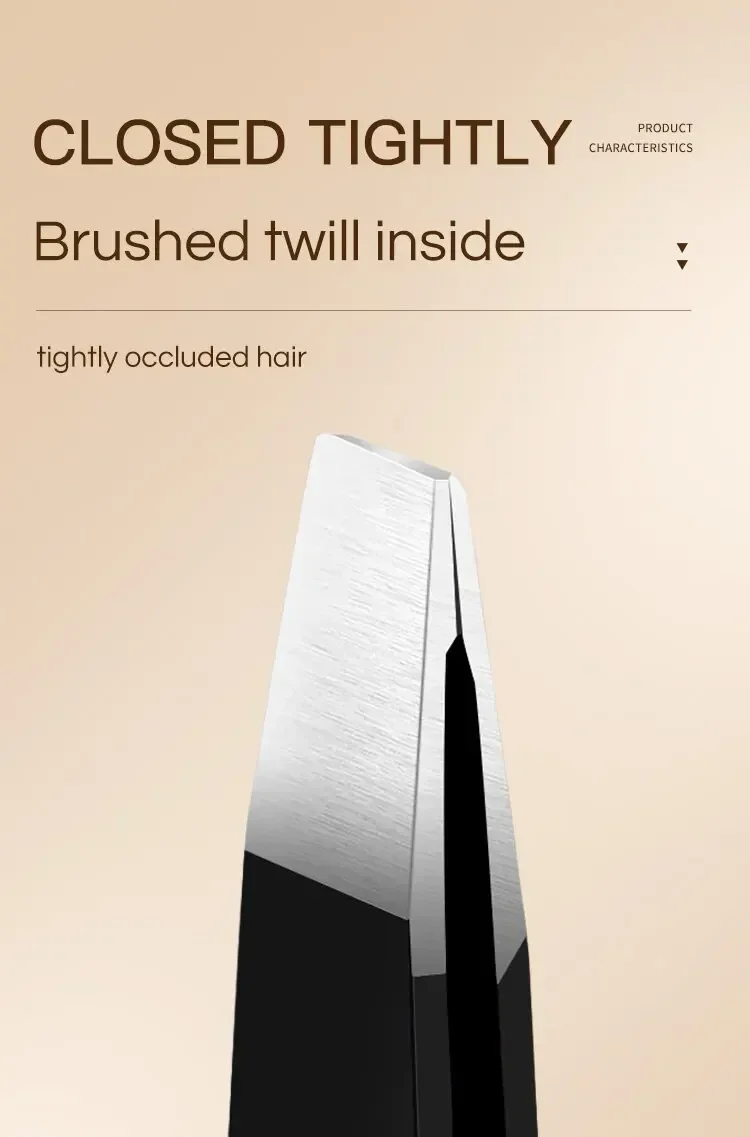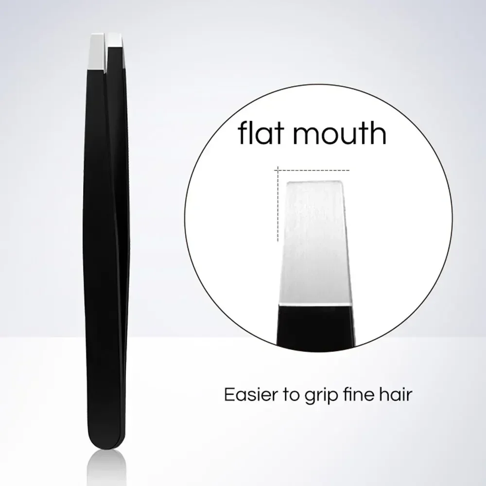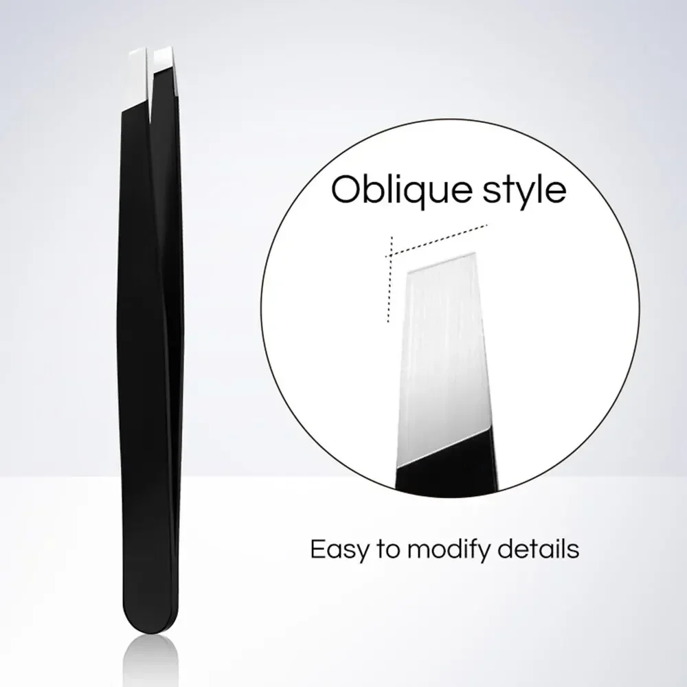 Pinzas para cejas negras de acero inoxidable, herramientas de belleza de punta inclinada y plana para depilación de cejas encarnadas, venta al por mayor