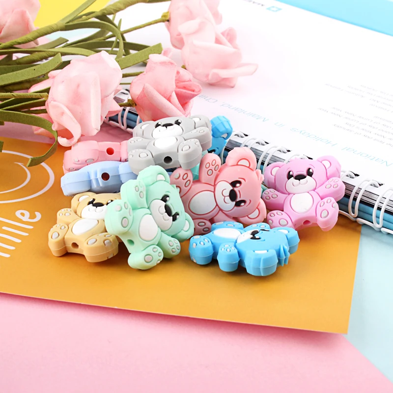 Comprar Pinzas de cuentas de silicona para chupete, cadena de lactancia DIY, juguete de dentición, mordedor para recién nacido de dibujos animados, producto de grado alimenticio, bebé, unicornio, oso