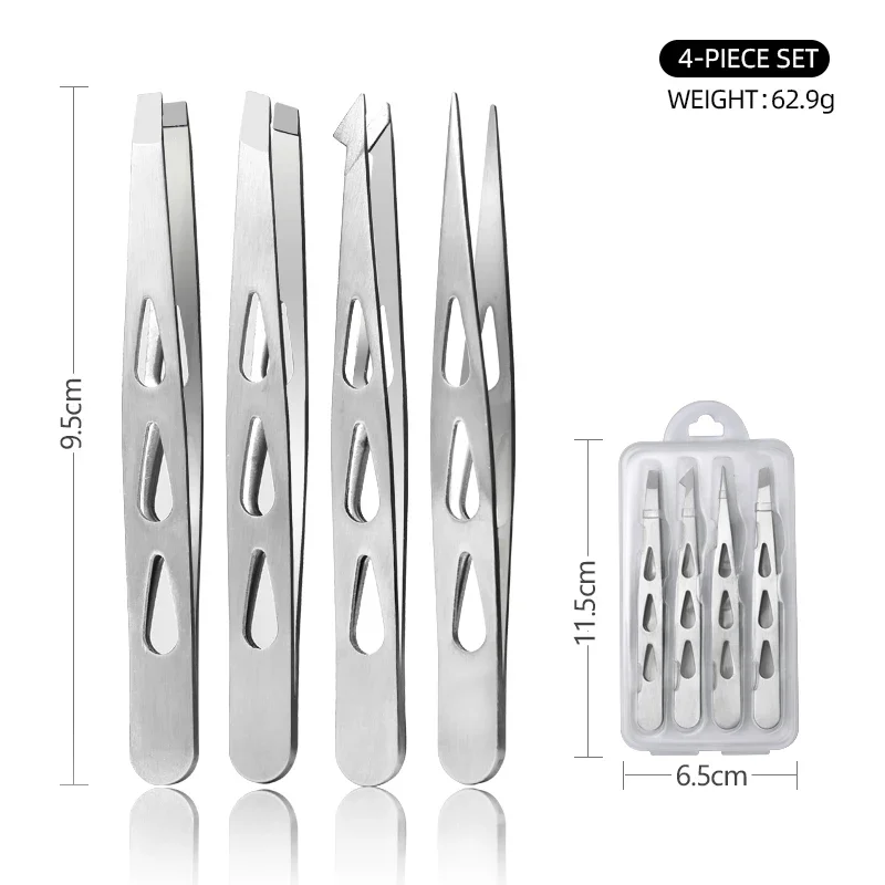 Pinzas para mujer Juego de pinzas para cejas, 4 piezas profesionales de acero inoxidable, pinzas de precisión para vello facial, astilla y Ingr