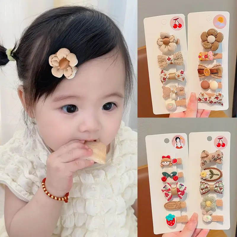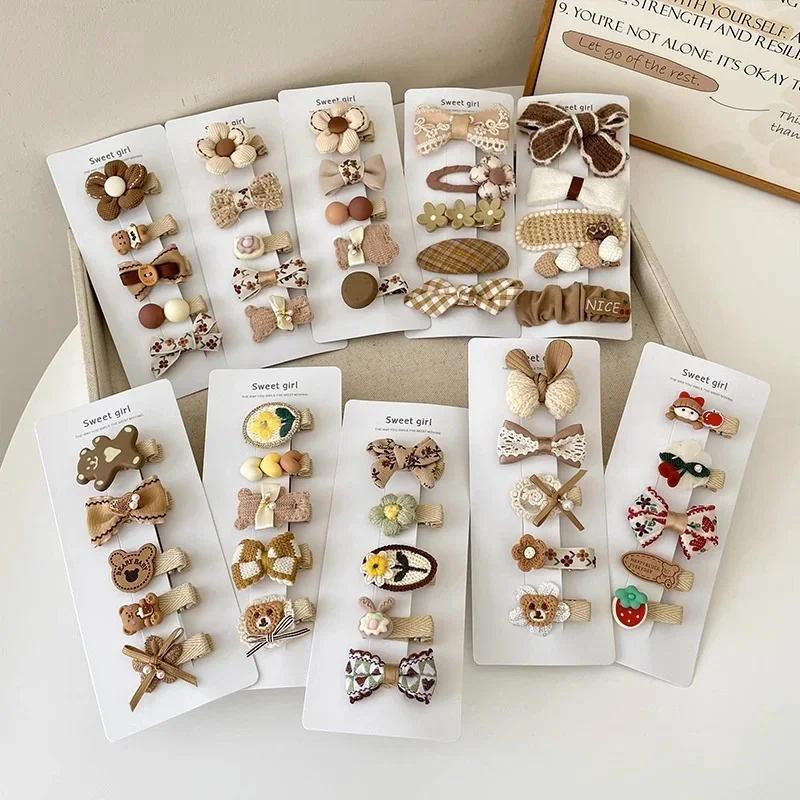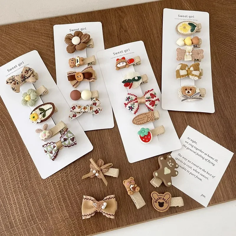 Comprar Pinzas para el pelo de 5 piezas para niña, horquilla de felpa de Color Beige y café para bebé, sombreros Kawaii con lazo, Otoño e Invierno