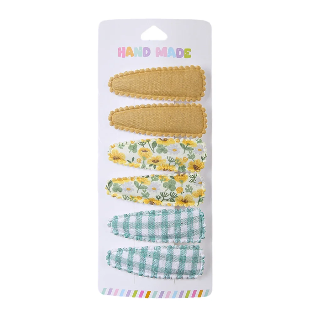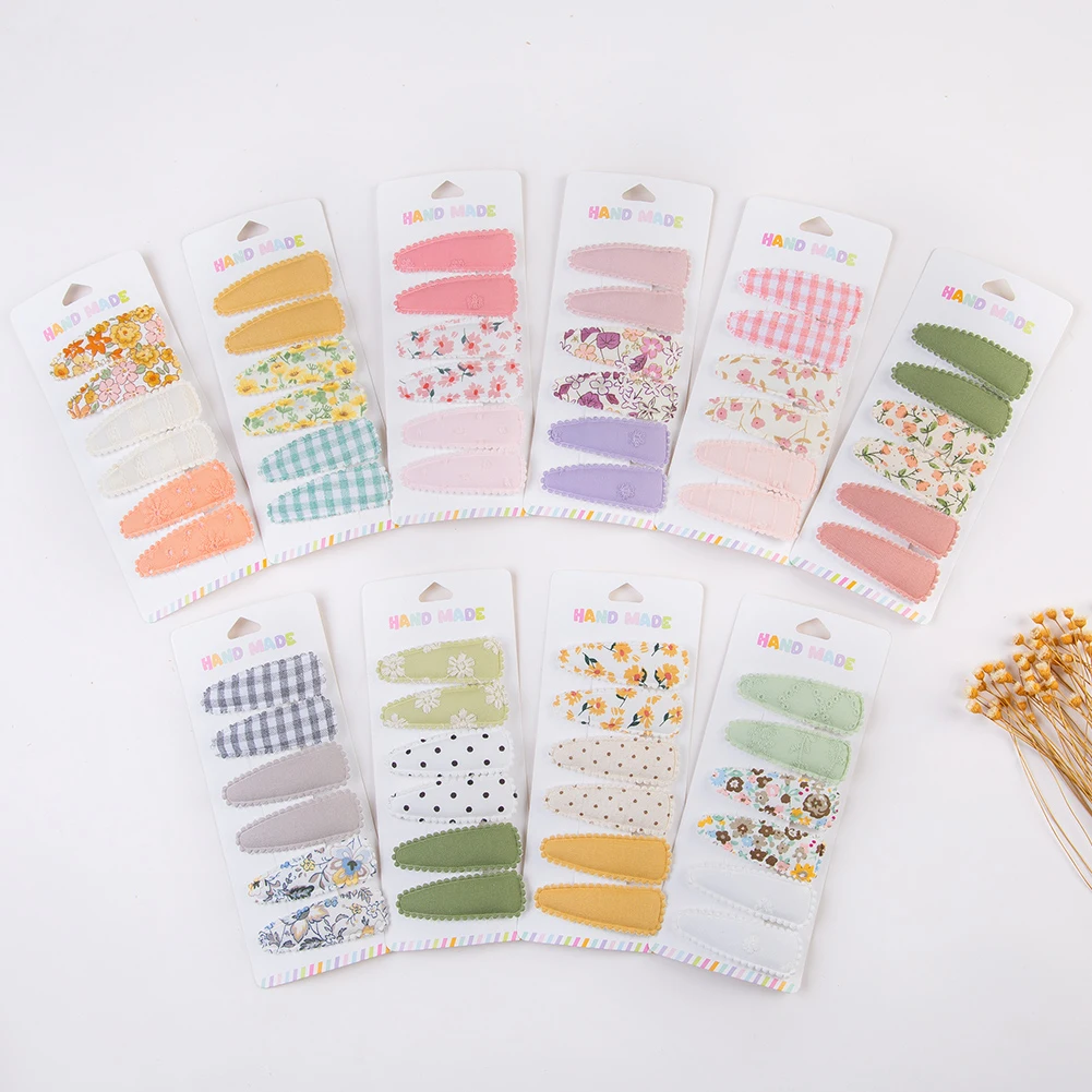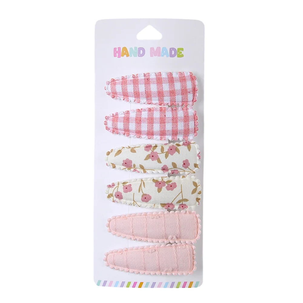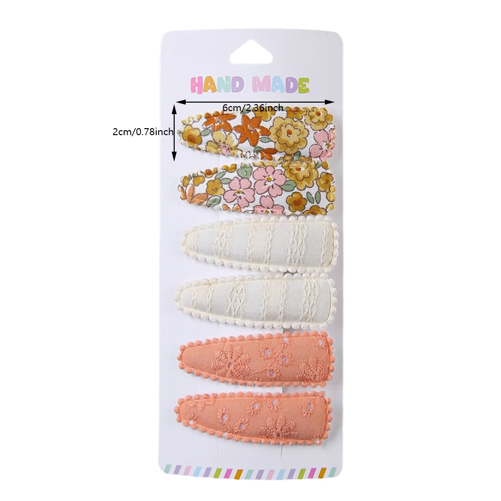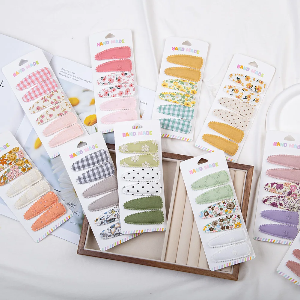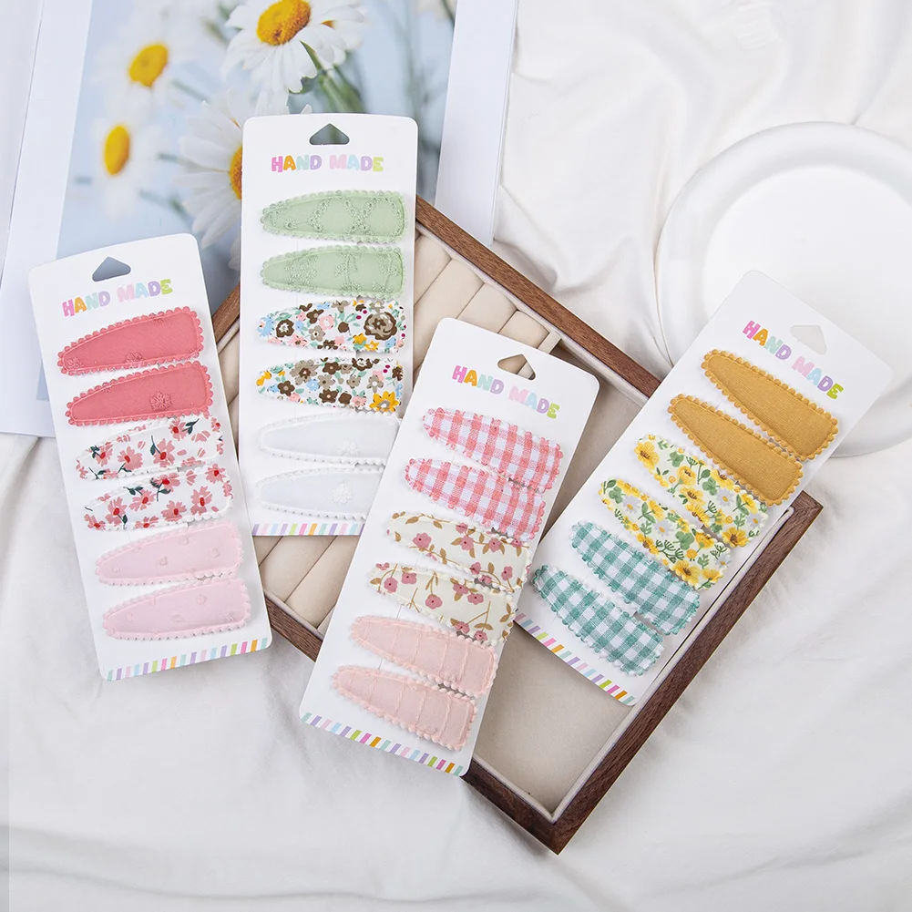 Comprar Pinzas para el pelo de tela con estampado de flores para bebé, pasadores BB coreanos de 6cm, horquillas simples a cuadros para niñas recién nacidas, 6 unidades por juego