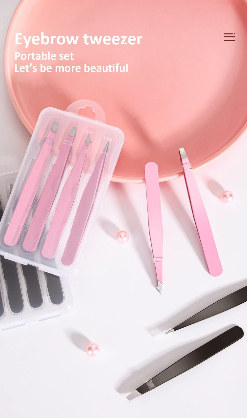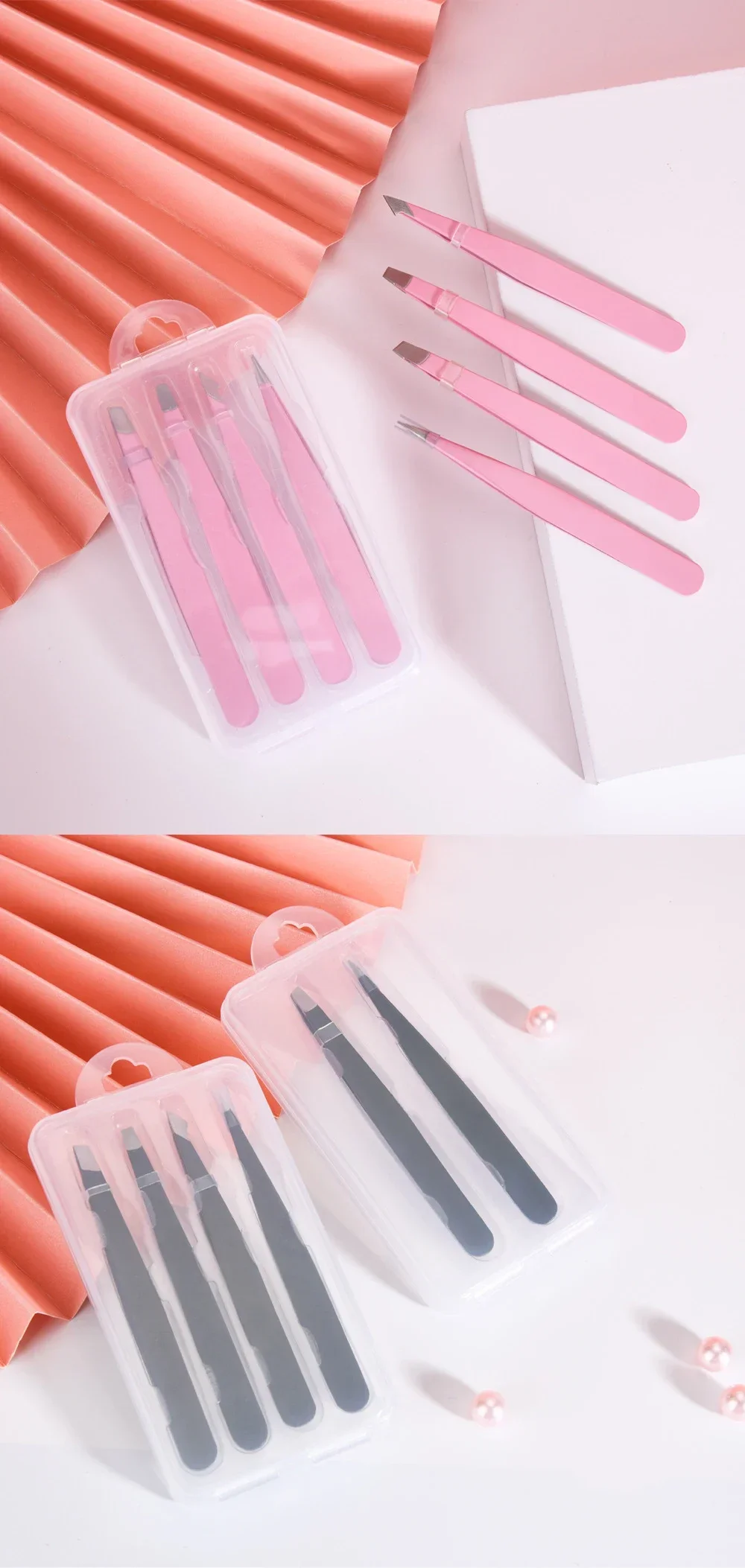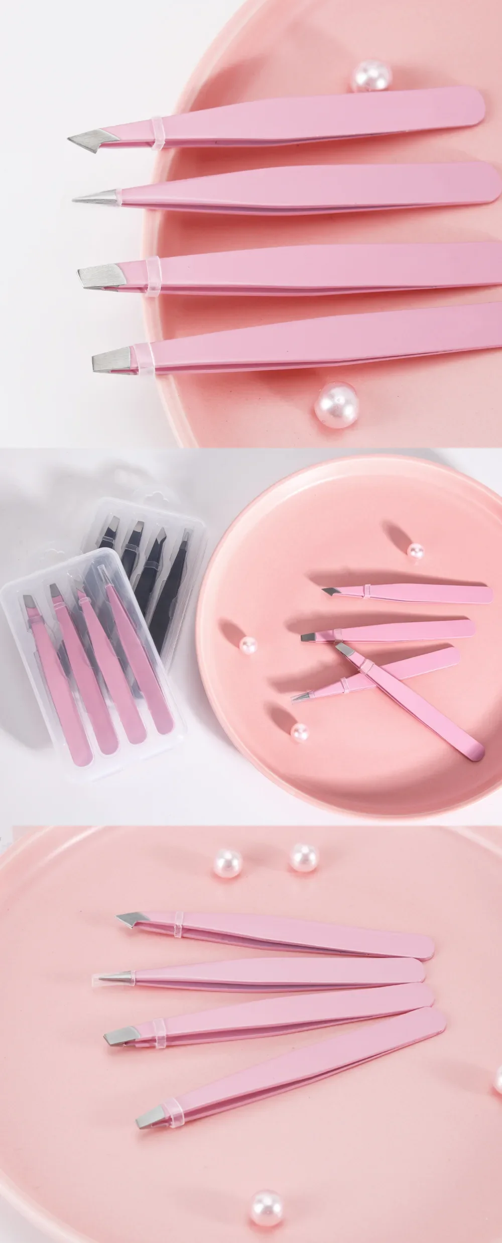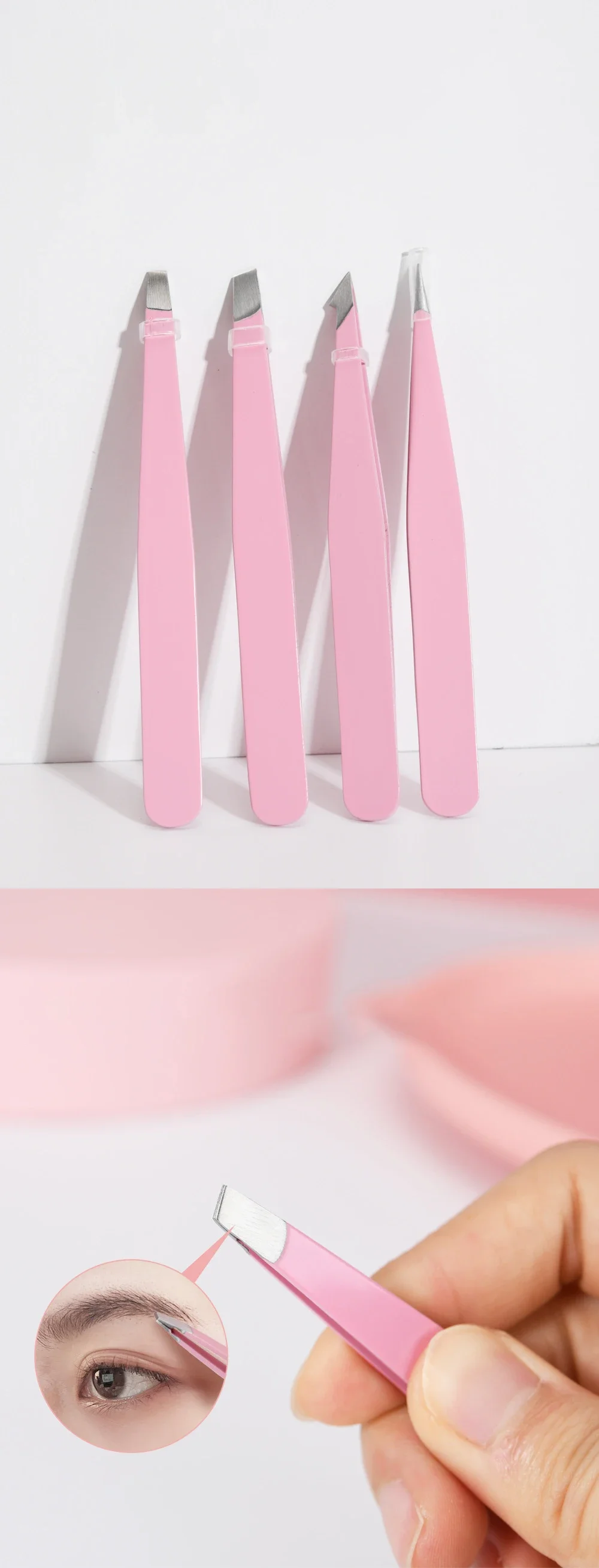 Pinzas para pelos finos, belleza del cabello, rosa, 2/4 Uds., extractor de cejas de alta calidad, pinzas para cejas inclinadas de acero inoxidable, herramientas de maquillaje para quitar