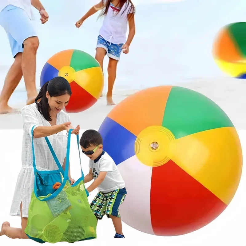 Piscina al aire libre de verano, pelota inflable para playa, juguete, bolsa de malla de almacenamiento para playa, juego de voleibol, Interacción entre padres e hijos
