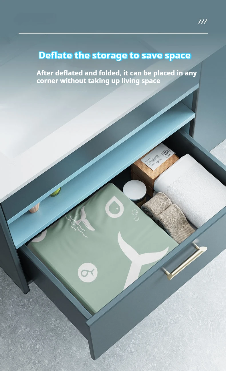 2. DRENAMIENTO DE AGUA RÁPIDO Y PLEGABLE: Incorporado con un tapón de drenaje en el fondo de la piscina, drene el agua en varios minutos.Desinfle la piscina y límpiela con un paño limpio.Doblar para guardar cuando no esté en uso.