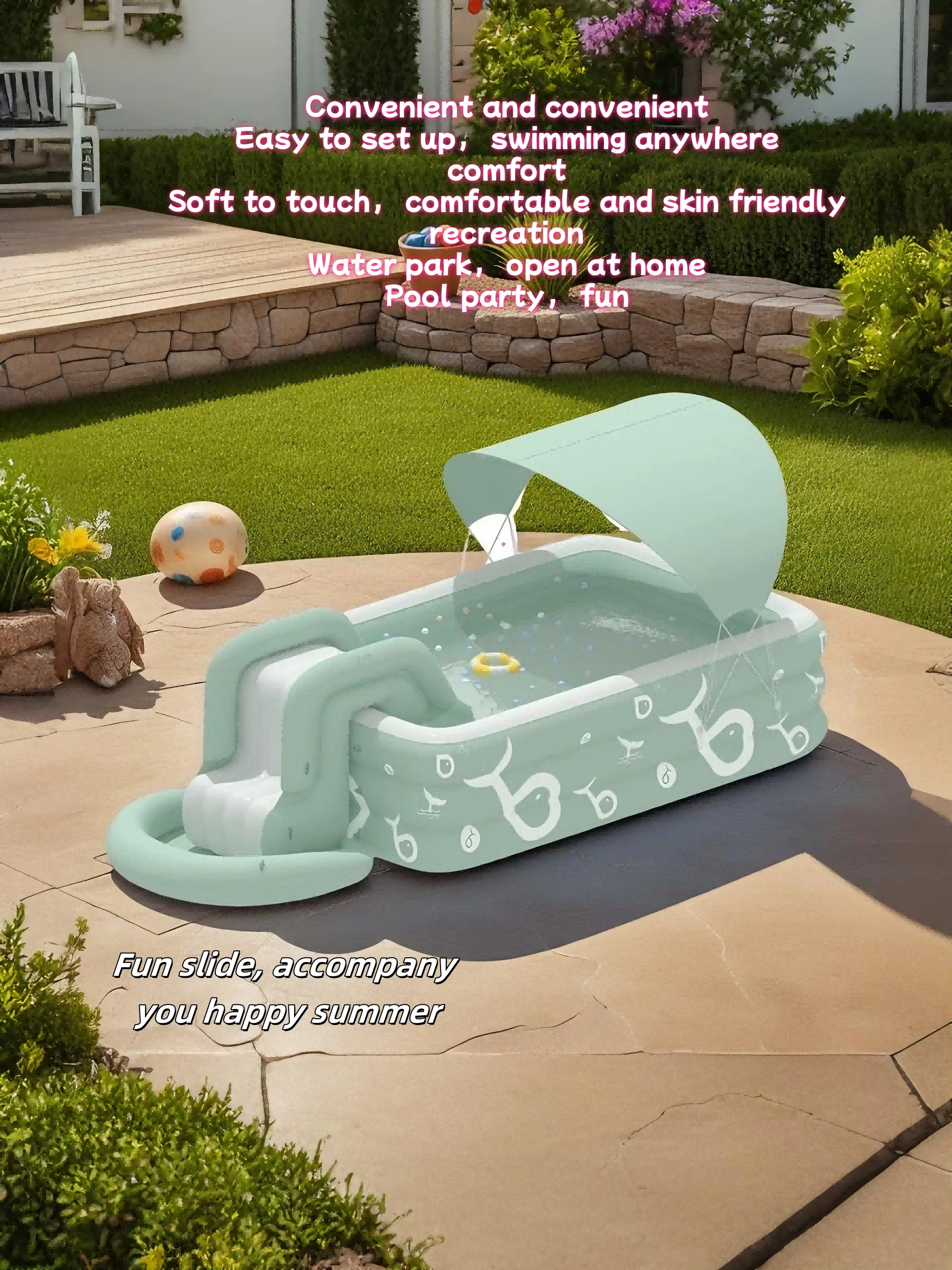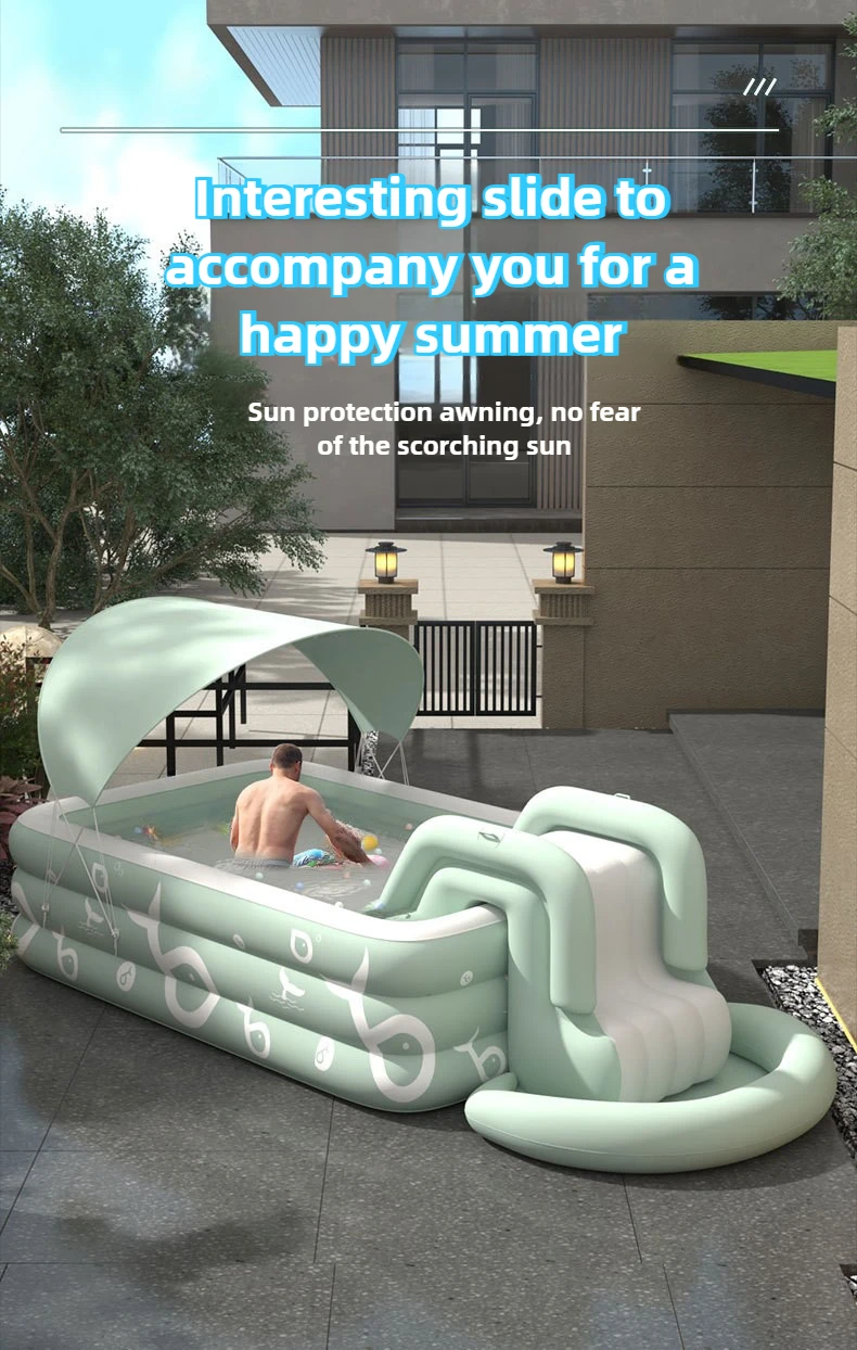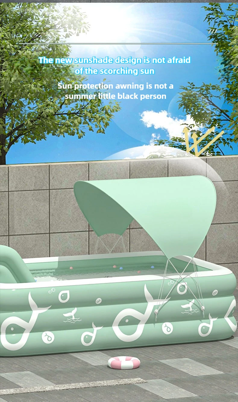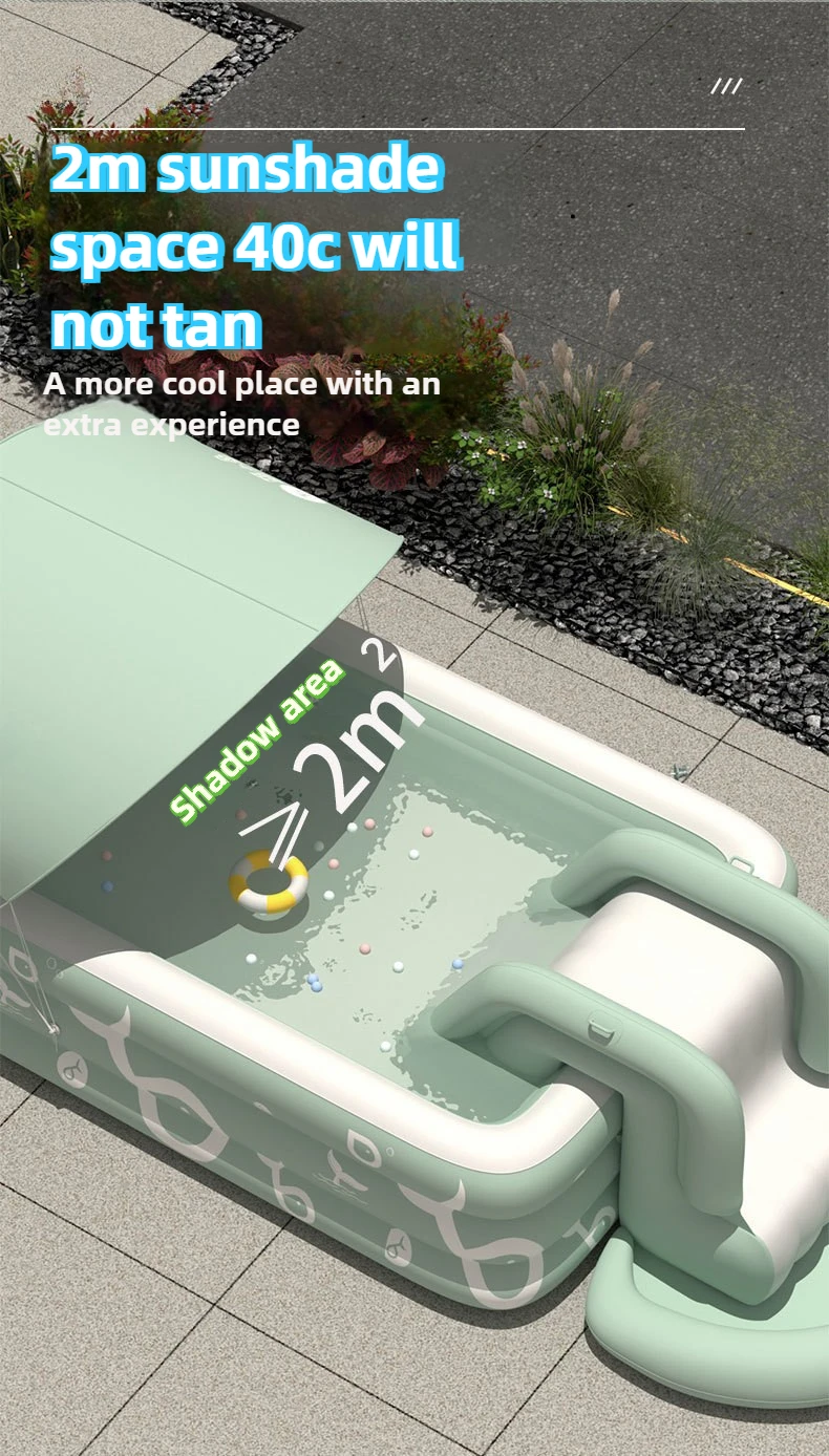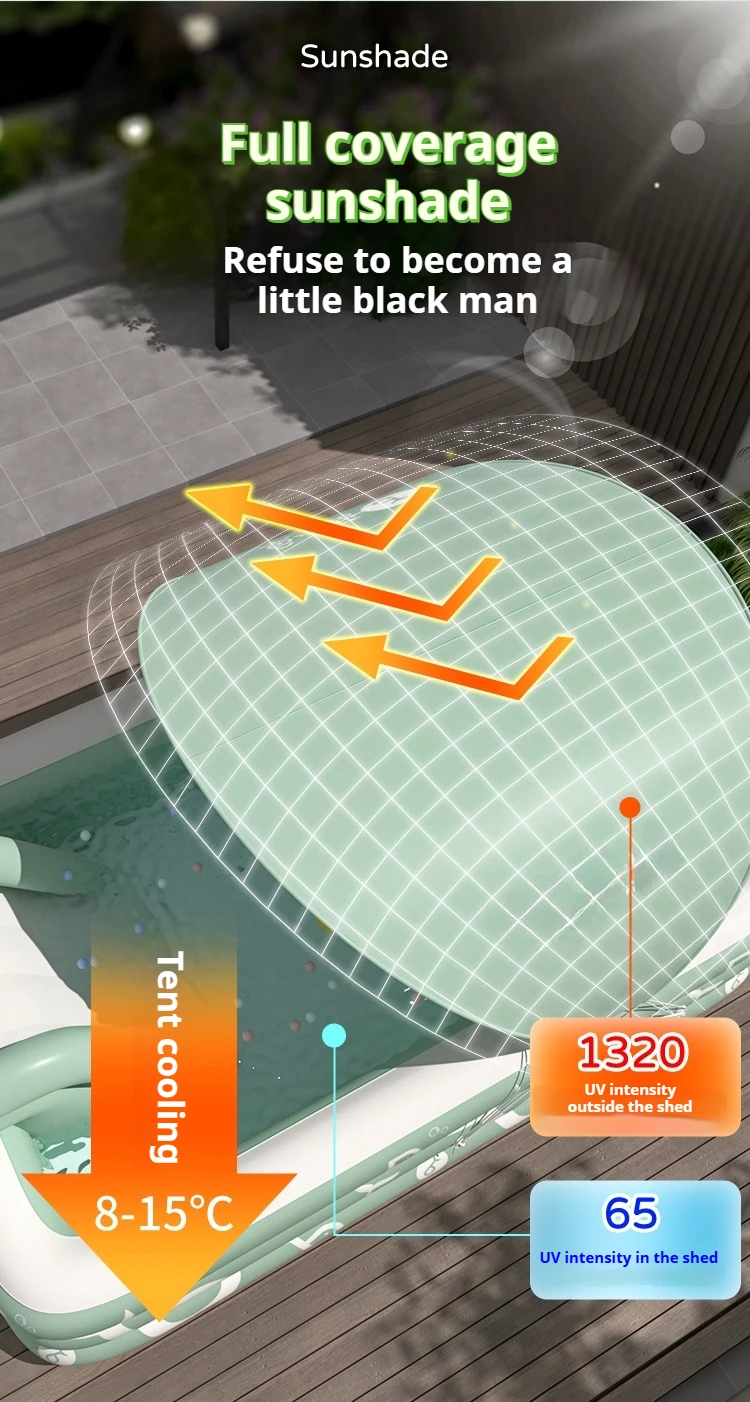 3. USOS MÚLTIPLES: Ideal para que a su hijo le guste jugar en el agua.Deje que el niño disfrute de la diversión acuática y se refresque cuando venga con esta piscina inflable.en la llegada con esta piscina inflable.