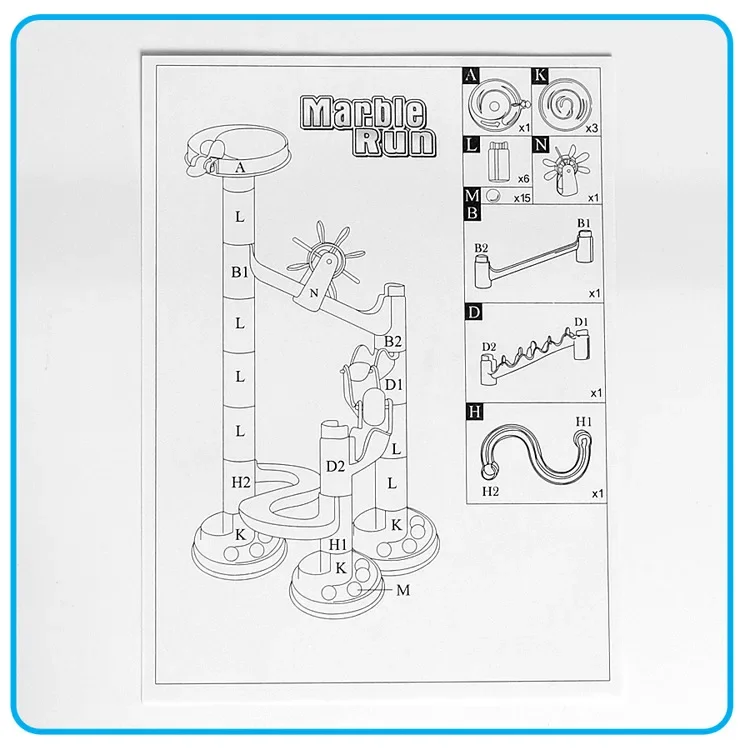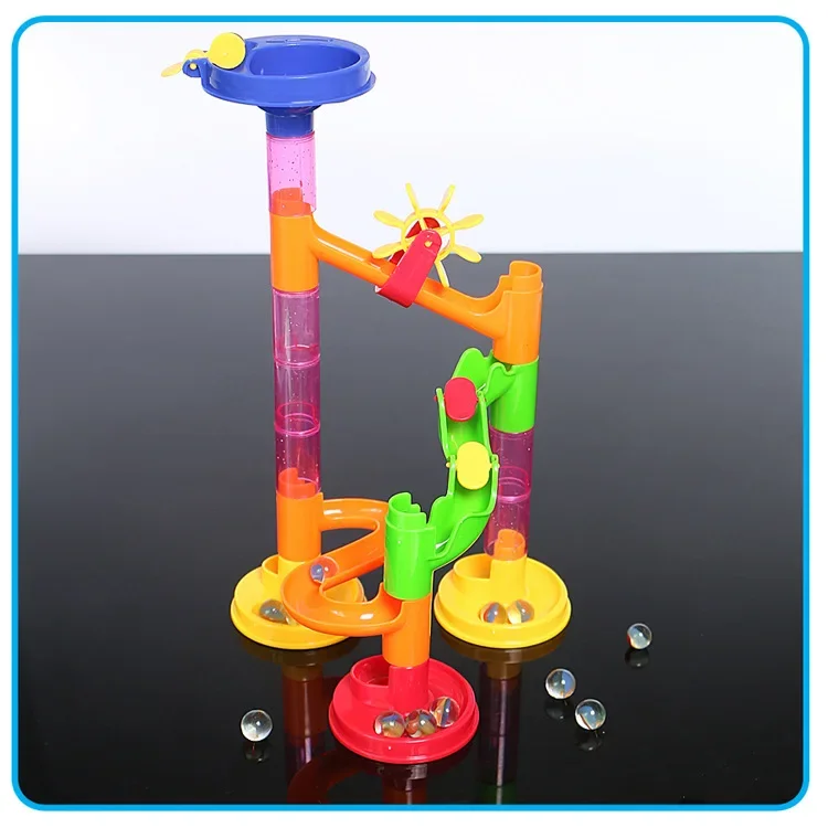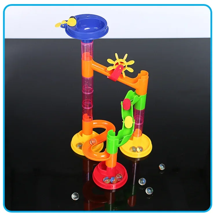 -Create your own maze model using your imagination and watch the marbles run across the track.