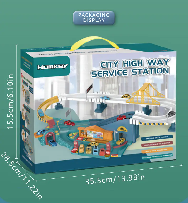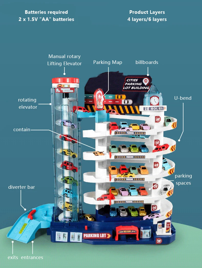 2.El camino de montaña de dinosaurios y el estacionamiento de la ciudad ofrecen una variedad de opciones de juego, brindando diversión sin fin.